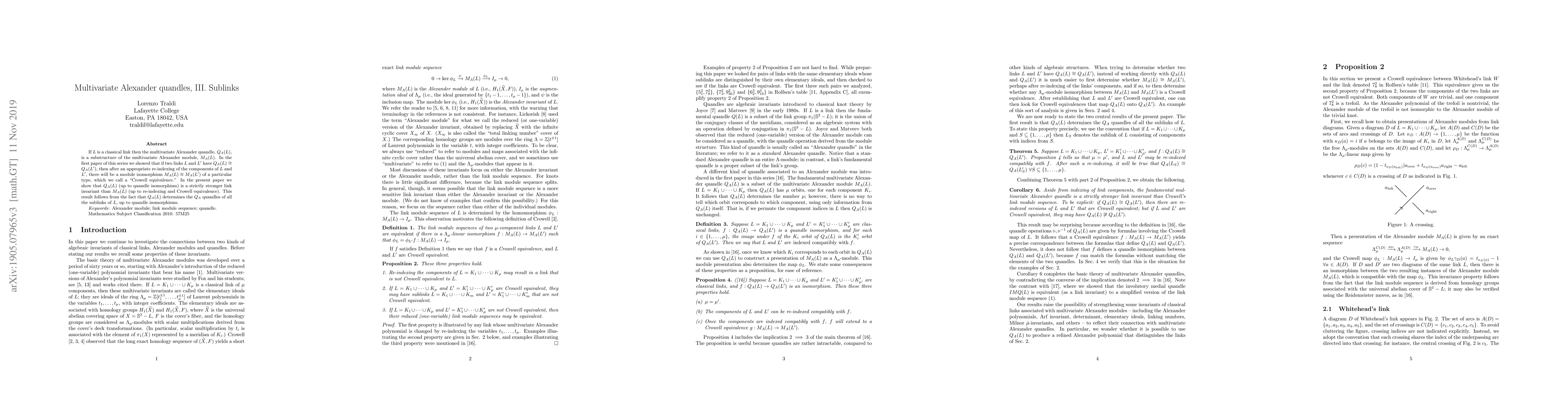 If $L$ is a classical link then the multivariate Alexander quandle, $Q_A(L)$, is a substructure of the multivariate Alexander module, $M_A(L)$. In the first paper of this series we showed that if two links $L$ and $L'$ have $Q_A(L) \cong Q_A(L')$, then after an appropriate re-indexing of the components of $L$ and $L'$, there will be a module isomorphism $M_A(L) \cong M_A(L')$ of a particular type, which we call a"Crowell equivalence." In the present paper we show that $Q_A(L)$ (up to quandle isomorphism) is a strictly stronger link invariant than $M_A(L)$ (up to re-indexing and Crowell equivalence). This result follows from the fact that $Q_A(L)$ determines the $Q_A$ quandles of all the sublinks of $L$, up to quandle isomorphisms.