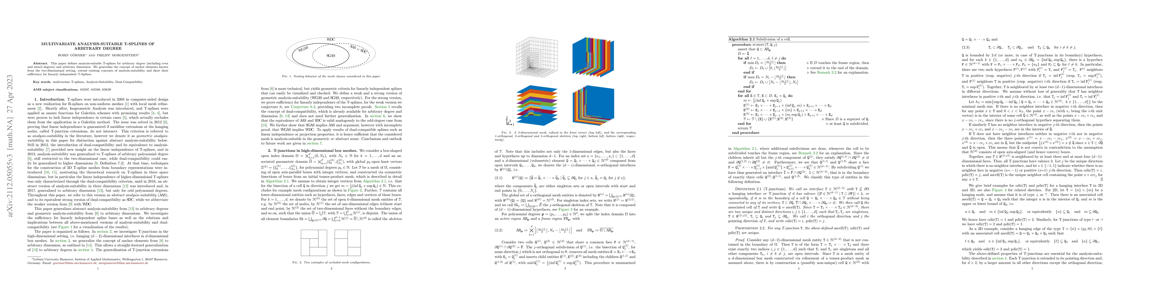 This paper introduces analysis-suitable T-splines of arbitrary degree and dimension, extending the concept of anchor elements and demonstrating their sufficiency for linearly independent T-splines. The generalization applies to both even and mixed degrees.