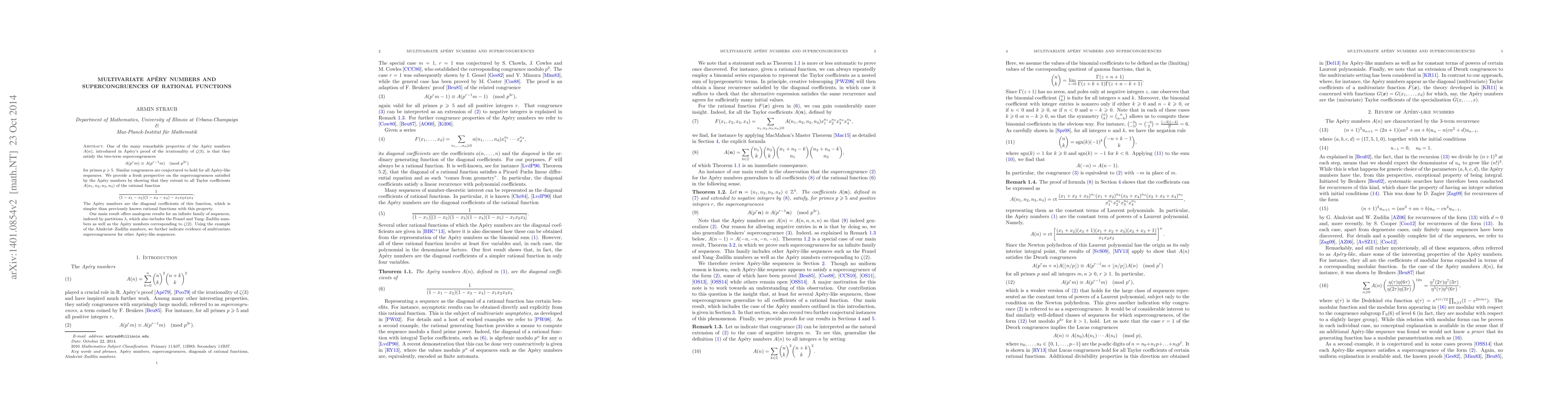 This paper explores multivariate Apéry numbers and demonstrates their supercongruences extend to Taylor coefficients of a specific rational function. It reveals analogous results for sequences indexed by partitions, including Franel, Yang-Zudilin, and Apéry numbers for $\zeta(2)$, suggesting broader multivariate supercongruences.
