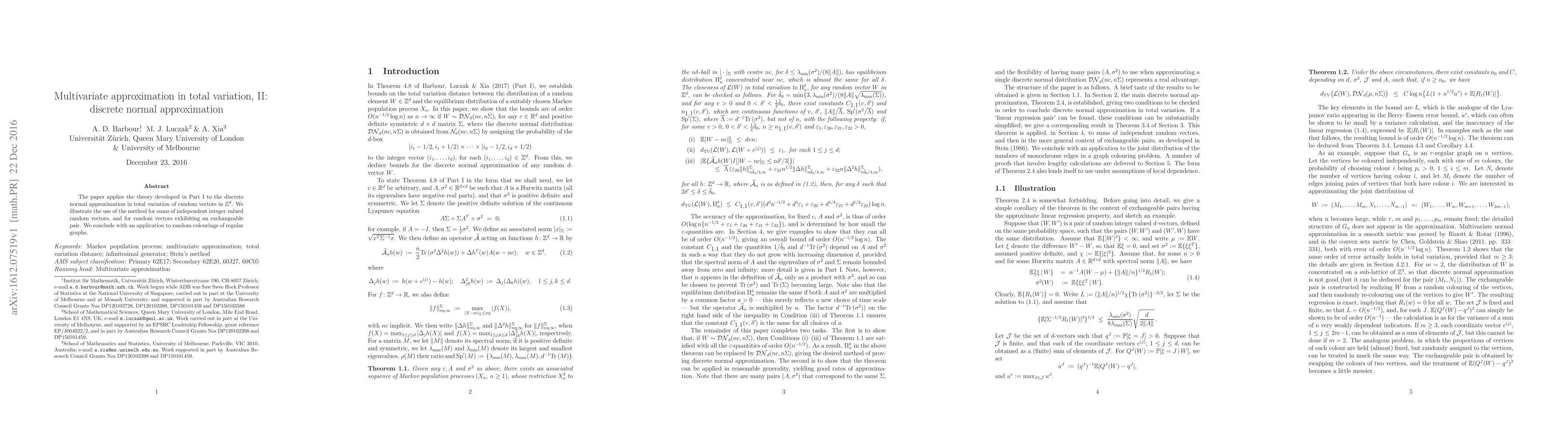 The paper applies the theory developed in Part I to the discrete normal approximation in total variation of random vectors in ${\mathbb Z}^d$. We illustrate the use of the method for sums of independent integer valued random vectors, and for random vectors exhibiting an exchangeable pair. We conclude with an application to random colourings of regular graphs.