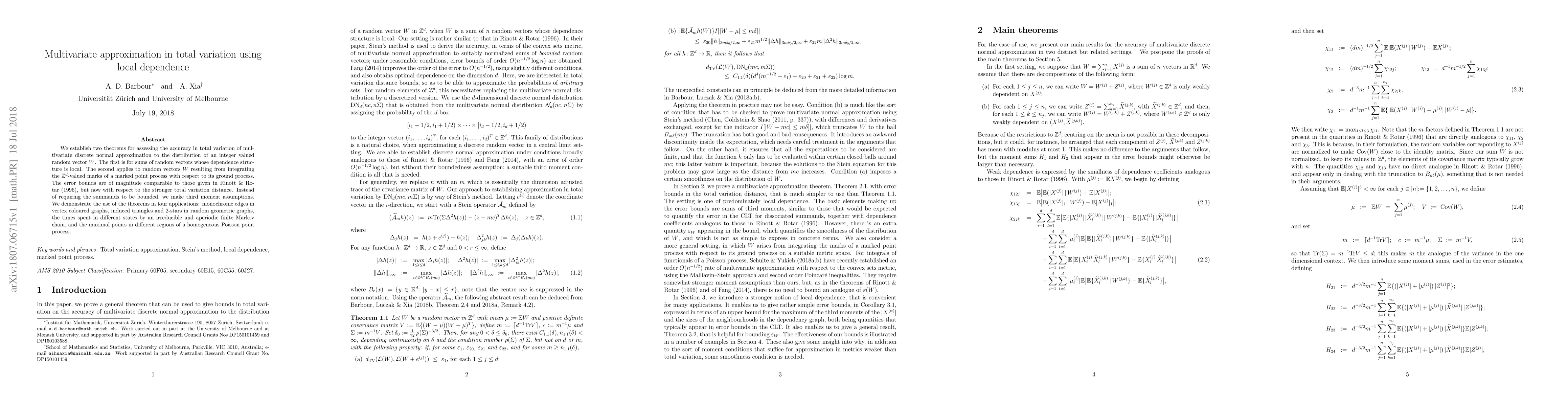 Researchers developed new methods to accurately approximate multivariate distributions with high accuracy, applicable in various fields like graph theory and Markov chain analysis, using total variation distance for error assessment.