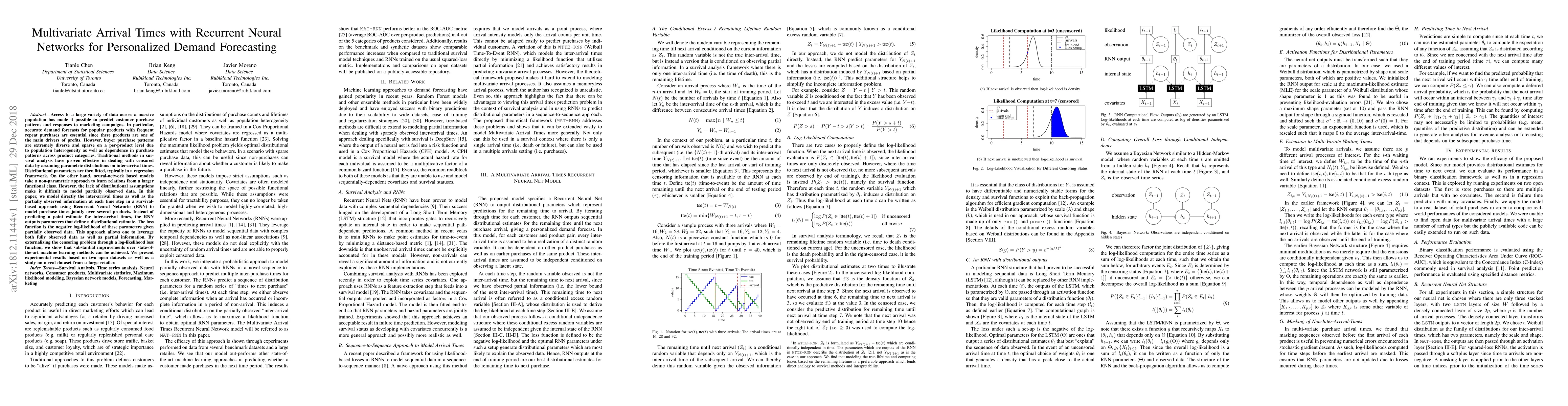 This paper proposes using Recurrent Neural Networks (RNN) to model inter-arrival times and partially observed data for personalized demand forecasting. It leverages a log-likelihood loss function to handle censored data, achieving substantial improvements over traditional and other machine learning methods, as demonstrated through experiments on open and real-world datasets.