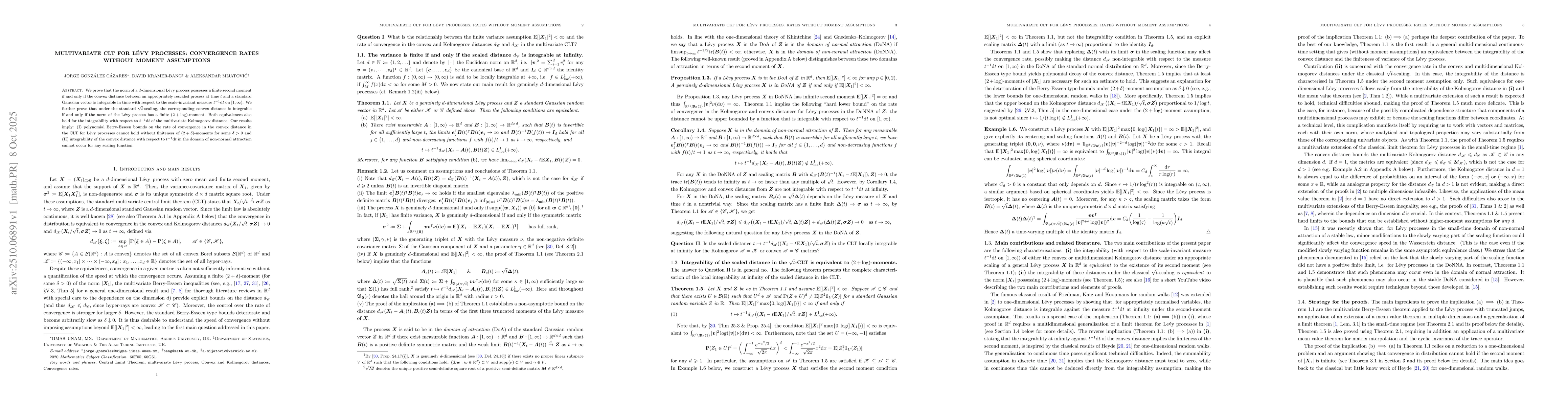 The research employs a combination of analytical techniques and probabilistic methods to study convergence rates of multivariate central limit theorems for Lévy processes without assuming finite moments. It utilizes tools from regular variation theory, stochastic processes, and metric space analysis.