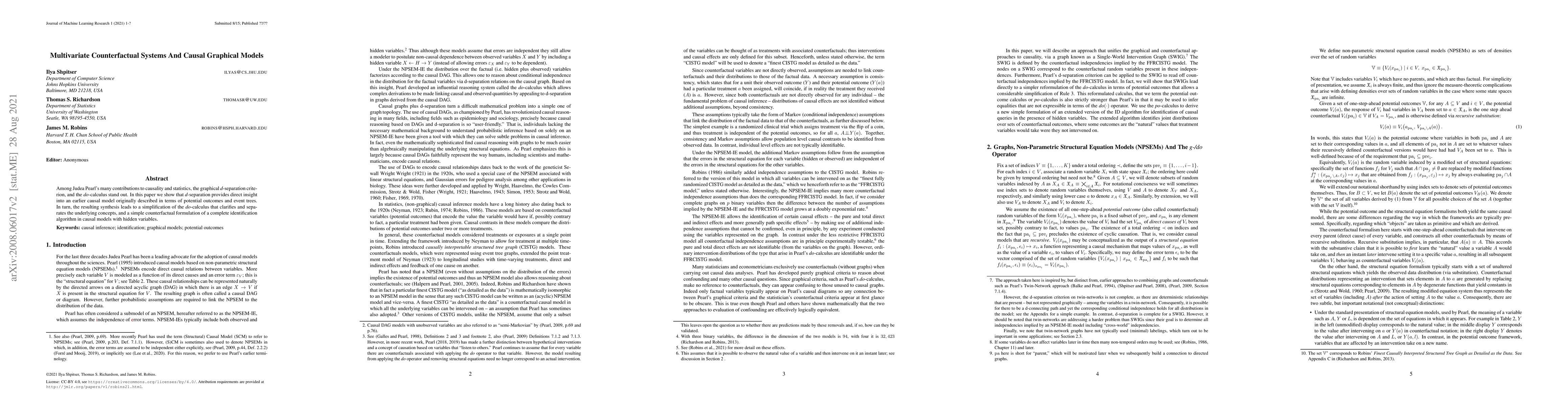 This paper synthesizes Judea Pearl's d-separation criterion with counterfactual models to simplify the do-calculus and develop a clear identification algorithm for causal models, especially those with hidden variables. The approach leverages graphical models to clarify causal relationships and potential outcomes.