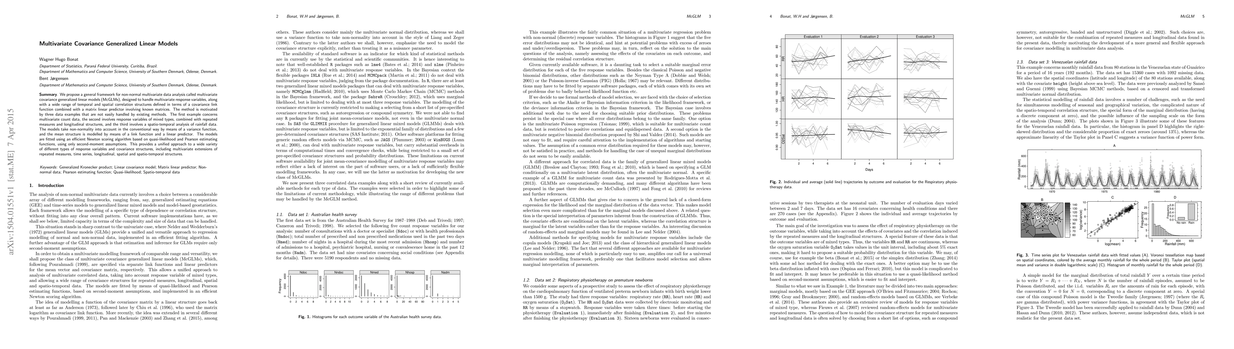 This paper introduces multivariate covariance generalized linear models (McGLMs) for analyzing non-normal multivariate data, accommodating mixed-type response variables and various temporal and spatial correlation structures. The method is demonstrated through applications to multivariate count data, mixed-type responses with repeated measures, and spatio-temporal rainfall data, using an efficient Newton scoring algorithm for fitting.