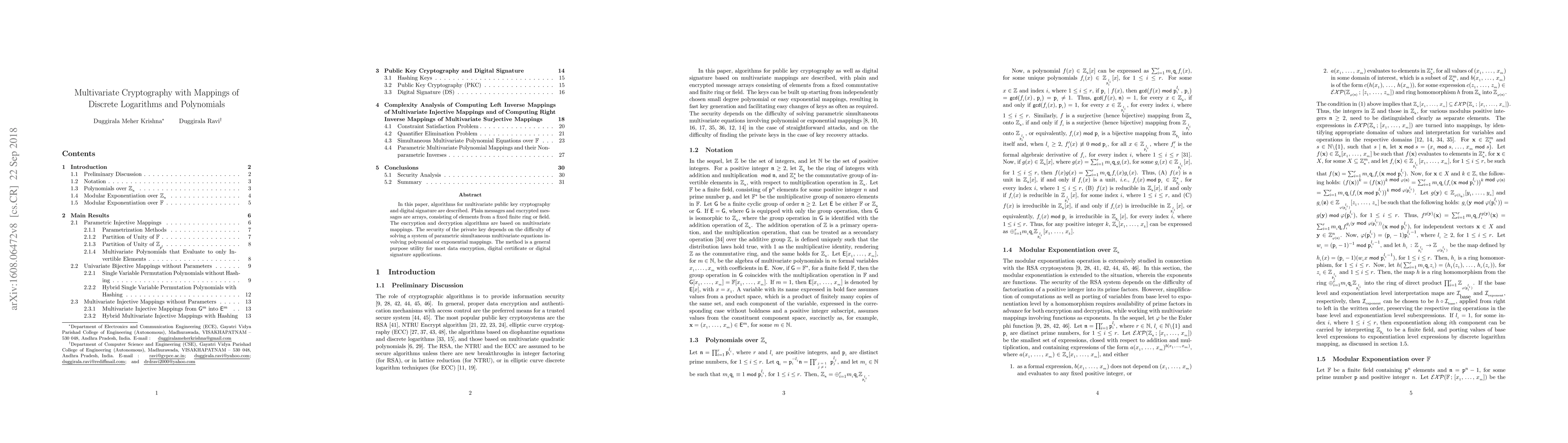 In this paper, algorithms for multivariate public key cryptography and digital signature are described. Plain messages and encrypted messages are arrays, consisting of elements from a fixed finite ring or field. The encryption and decryption algorithms are based on multivariate mappings. The security of the private key depends on the difficulty of solving a system of parametric simultaneous multivariate equations involving polynomial or exponential mappings. The method is a general purpose utility for most data encryption, digital certificate or digital signature applications.