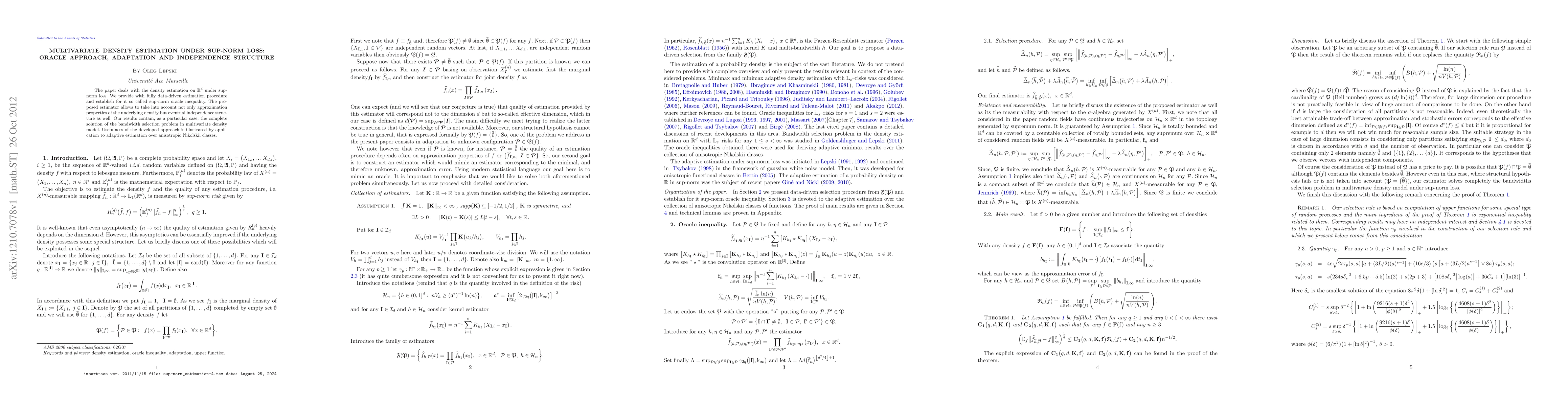 The paper presents a data-driven estimator for multivariate density estimation under sup-norm loss, incorporating both approximation properties and independence structures. It establishes a sup-norm oracle inequality and solves the bandwidth selection problem, demonstrated through adaptive estimation in anisotropic Nikolskii classes.