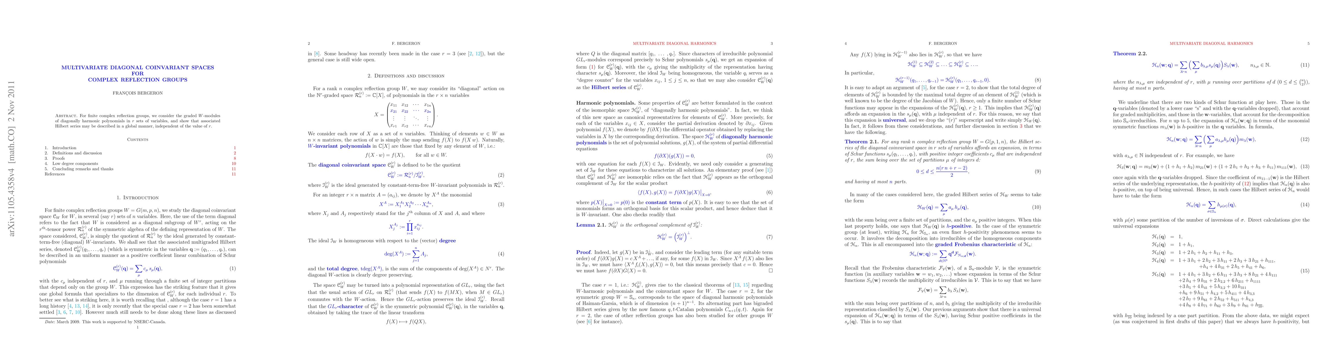 For finite complex reflexion groups, we consider the graded $W$-modules of diagonally harmonic polynomials in $r$ sets of variables, and show that associated Hilbert series may be described in a global manner, independent of the value of $r$.