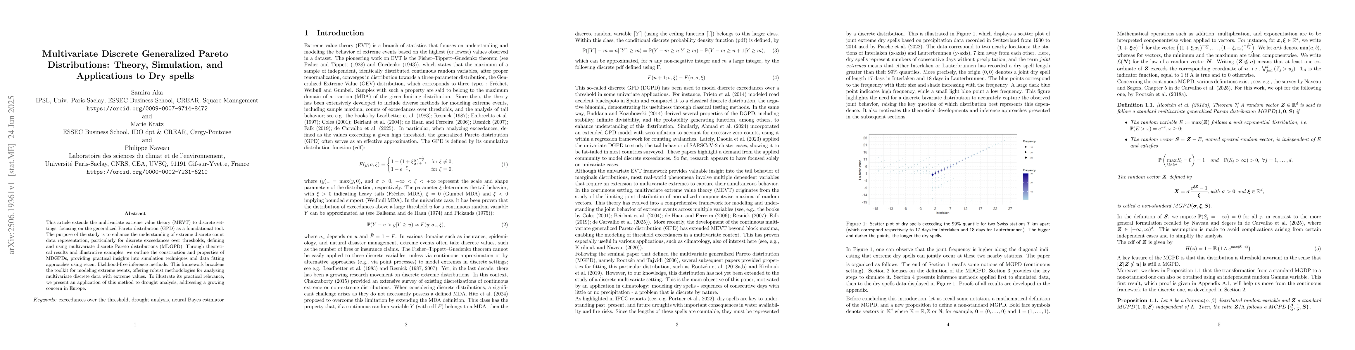 This article extends the multivariate extreme value theory (MEVT) to discrete settings, focusing on the generalized Pareto distribution (GPD) as a foundational tool. The purpose of the study is to enhance the understanding of extreme discrete count data representation, particularly for discrete exceedances over thresholds, defining and using multivariate discrete Pareto distributions (MDGPD). Through theoretical results and illustrative examples, we outline the construction and properties of MDGPDs, providing practical insights into simulation techniques and data fitting approaches using recent likelihood-free inference methods. This framework broadens the toolkit for modeling extreme events, offering robust methodologies for analyzing multivariate discrete data with extreme values. To illustrate its practical relevance, we present an application of this method to drought analysis, addressing a growing concern in Europe.