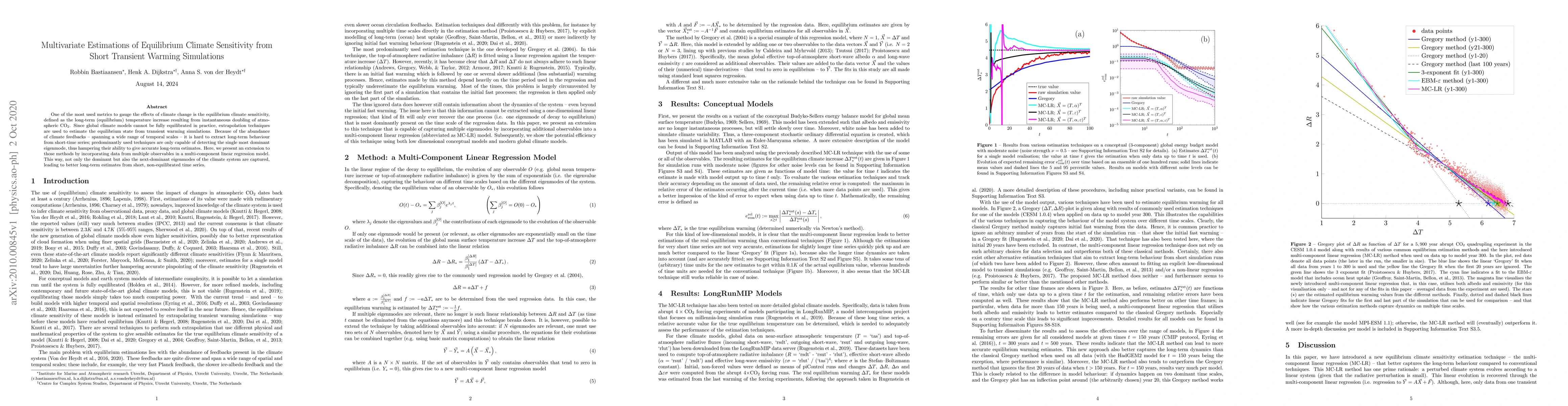 One of the most used metrics to gauge the effects of climate change is the equilibrium climate sensitivity, defined as the long-term (equilibrium) temperature increase resulting from instantaneous doubling of atmospheric CO$_2$. Since global climate models cannot be fully equilibrated in practice, extrapolation techniques are used to estimate the equilibrium state from transient warming simulations. Because of the abundance of climate feedbacks - spanning a wide range of temporal scales - it is hard to extract long-term behaviour from short-time series; predominantly used techniques are only capable of detecting the single most dominant eigenmode, thus hampering their ability to give accurate long-term estimates. Here, we present an extension to those methods by incorporating data from multiple observables in a multi-component linear regression model. This way, not only the dominant but also the next-dominant eigenmodes of the climate system are captured, leading to better long-term estimates from short, non-equilibrated time series.