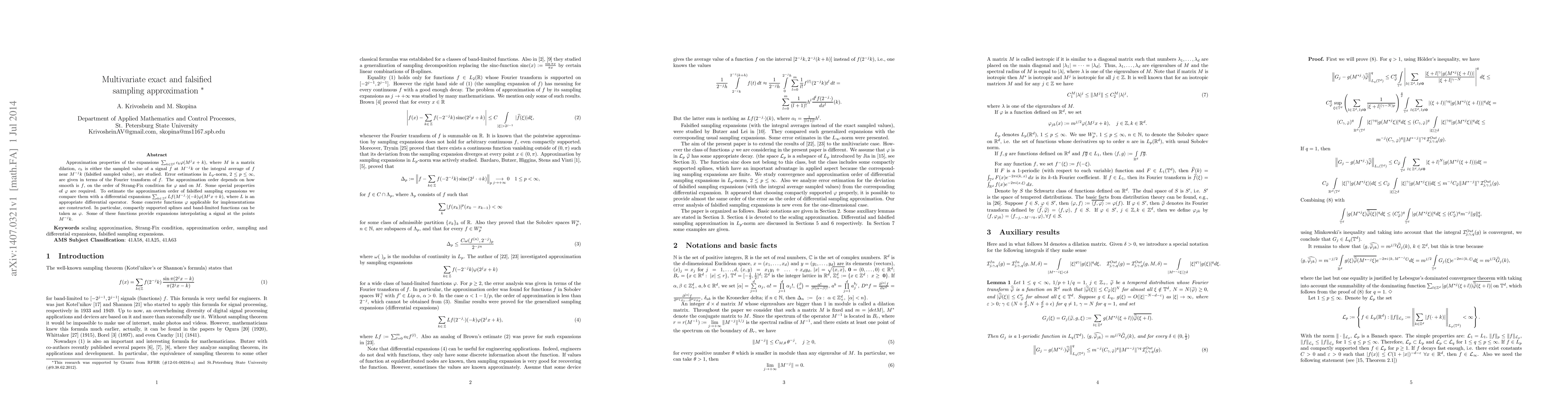 Approximation properties of the expansions $\sum_{k\in{\mathbb z}^d}c_k\phi(M^jx+k)$, where $M$ is a matrix dilation, $c_k$ is either the sampled value of a signal $f$ at $M^{-j}k$ or the integral average of $f$ near $M^{-j}k$ (falsified sampled value), are studied. Error estimations in $L_p$-norm, $2\le p\le\infty$, are given in terms of the Fourier transform of $f$. The approximation order depends on how smooth is $f$, on the order of Strang-Fix condition for $\phi$ and on $M$. Some special properties of $\phi$ are required. To estimate the approximation order of falsified sampling expansions we compare them with a differential expansions $\sum_{k\in\,{\mathbb z}^d} Lf(M^{-j}\cdot)(-k)\phi(M^jx+k)$, where $L$ is an appropriate differential operator. Some concrete functions $\phi$ applicable for implementations are constructed. In particular, compactly supported splines and band-limited functions can be taken as $\phi$. Some of these functions provide expansions interpolating a signal at the points $M^{-j}k$.
