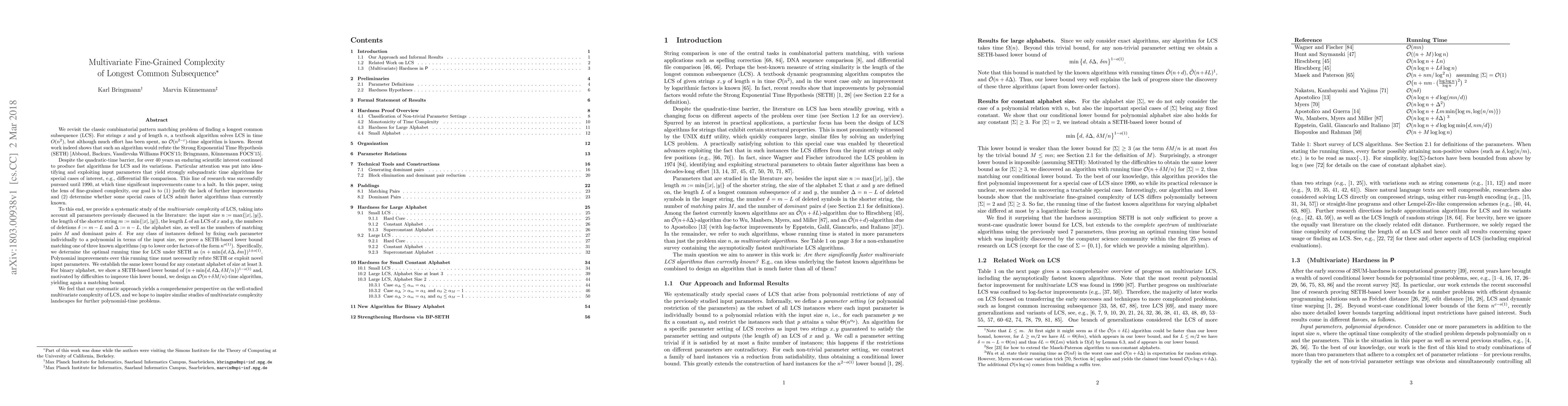 This paper systematically analyzes the complexity of the Longest Common Subsequence (LCS) problem, considering various input parameters. Under the Strong Exponential Time Hypothesis (SETH), it identifies the optimal multivariate running time for LCS as (n + min{d, δΔ, δm})^{1±o(1)}, where n is input size, d is the number of dominant pairs, and δ, Δ represent deletions. This study justifies the lack of further improvements and determines the efficiency bounds for special LCS cases.