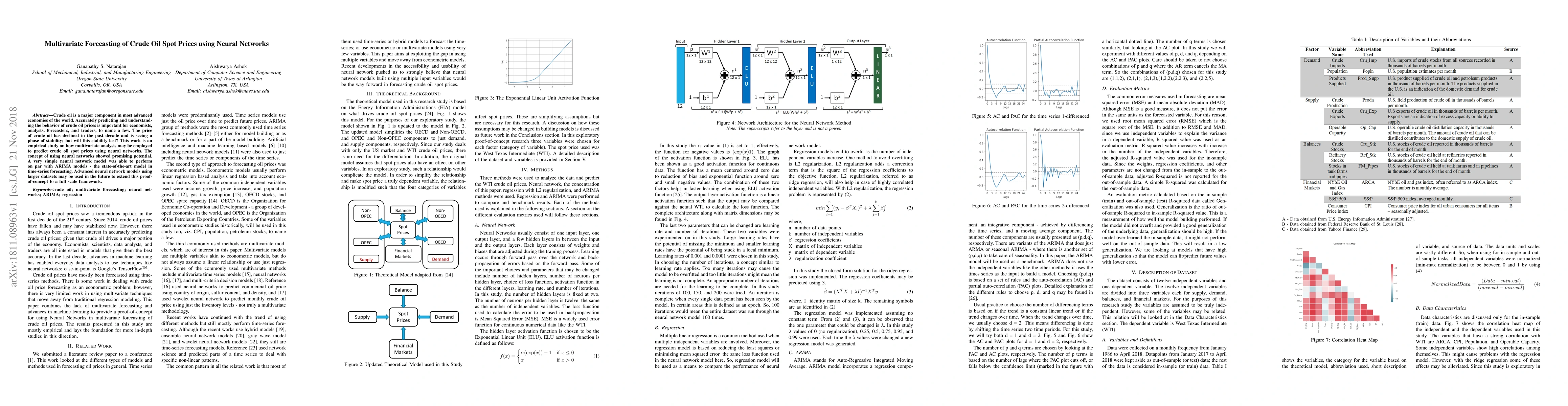 This study explores the use of neural networks for multivariate forecasting of crude oil spot prices, demonstrating that simple models can perform comparably to ARIMA models. Future work may leverage larger datasets to enhance the predictive capability of advanced neural network models.