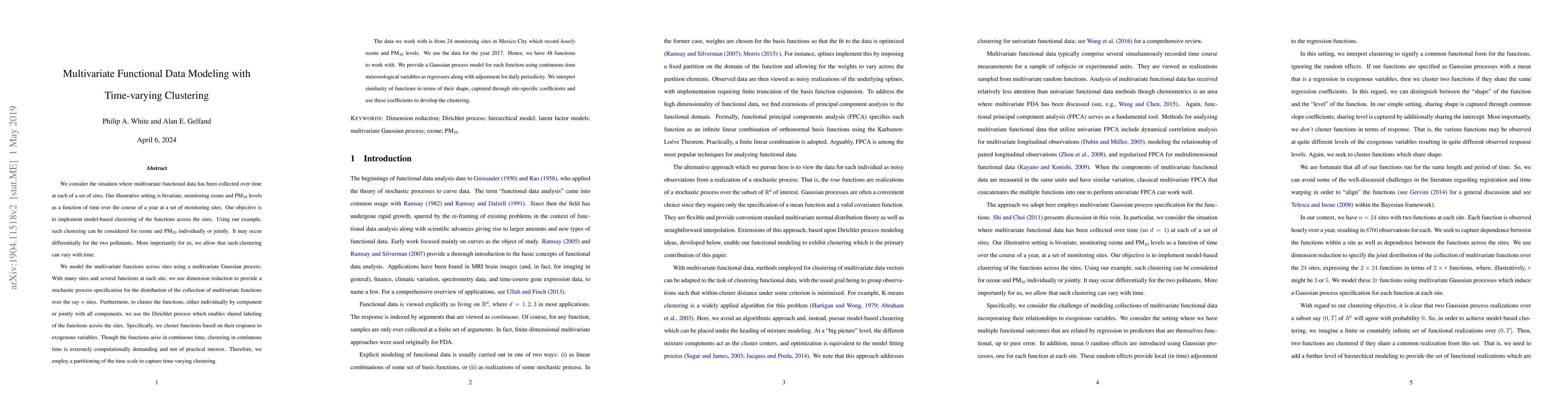This paper develops a multivariate functional data modeling approach for time-varying clustering of hourly ozone and PM$_{10}$ levels recorded at 24 sites in Mexico City in 2017. It employs a multivariate Gaussian process and dimension reduction, followed by Dirichlet process clustering to identify time-dependent patterns in the data.