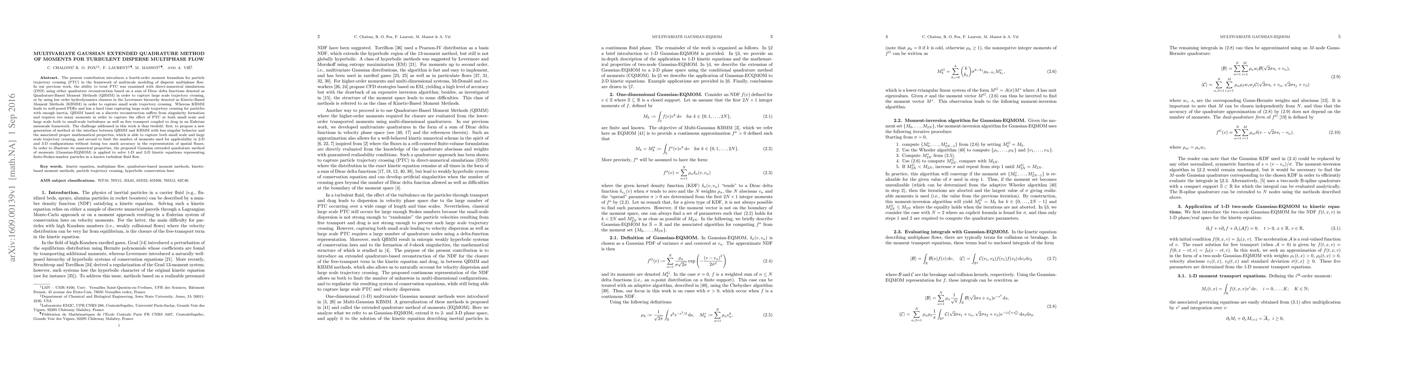 This paper proposes a fourth-order moment formalism, Gaussian extended quadrature method of moments (Gaussian-EQMOM), to capture both small and large scale particle trajectory crossing in turbulent multiphase flows. The method aims to address the limitations of previous methods, offering a balance between singularity issues and computational efficiency for 2-D and 3-D configurations.