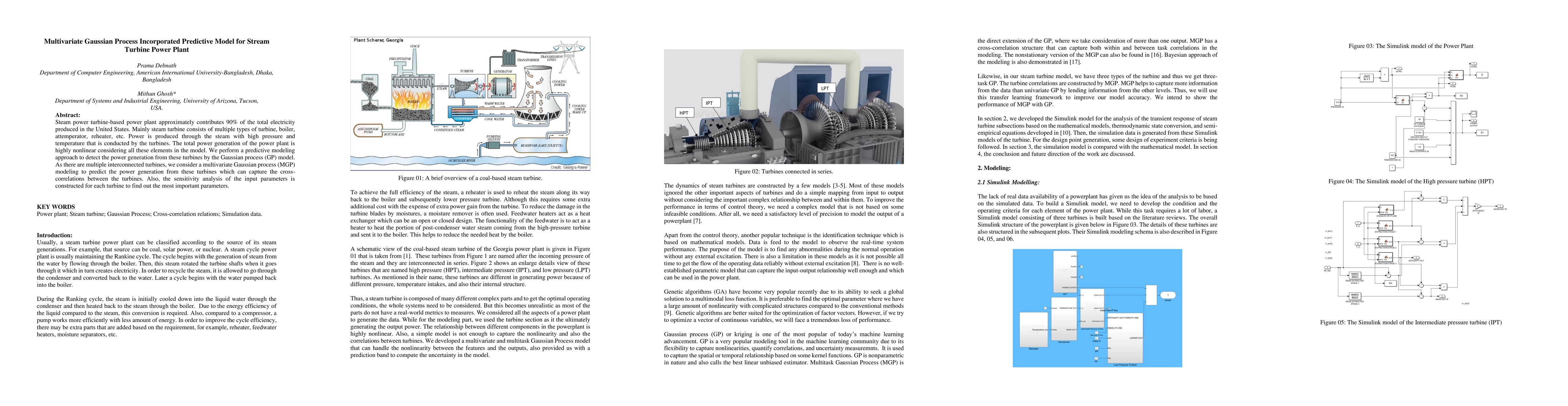 Steam power turbine-based power plant approximately contributes 90% of the total electricity produced in the United States. Mainly steam turbine consists of multiple types of turbine, boiler, attemperator, reheater, etc. Power is produced through the steam with high pressure and temperature that is conducted by the turbines. The total power generation of the power plant is highly nonlinear considering all these elements in the model. We perform a predictive modeling approach to detect the power generation from these turbines by the Gaussian process (GP) model. As there are multiple interconnected turbines, we consider a multivariate Gaussian process (MGP) modeling to predict the power generation from these turbines which can capture the cross-correlations between the turbines. Also, the sensitivity analysis of the input parameters is constructed for each turbine to find out the most important parameters.