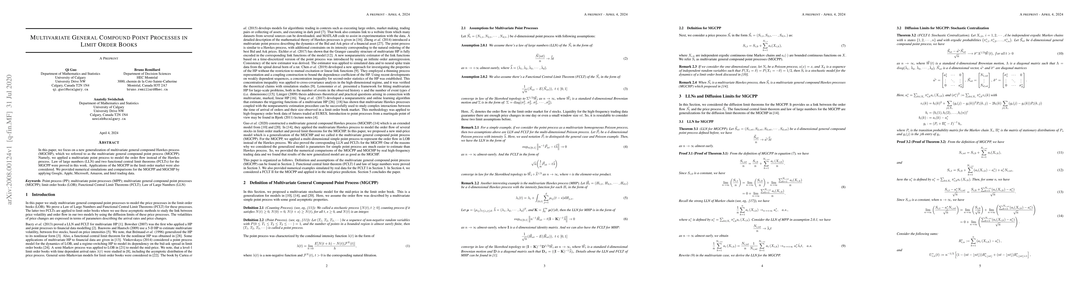 This paper introduces the multivariate general compound point process (MGCPP) as a new model for order flow in limit order books, replacing the multivariate general compound Hawkes process (MGCHP). It proves the Law of Large Numbers and two Functional Central Limit Theorems for the MGCPP, and demonstrates its application through numerical simulations and comparisons using trading data from major tech companies.