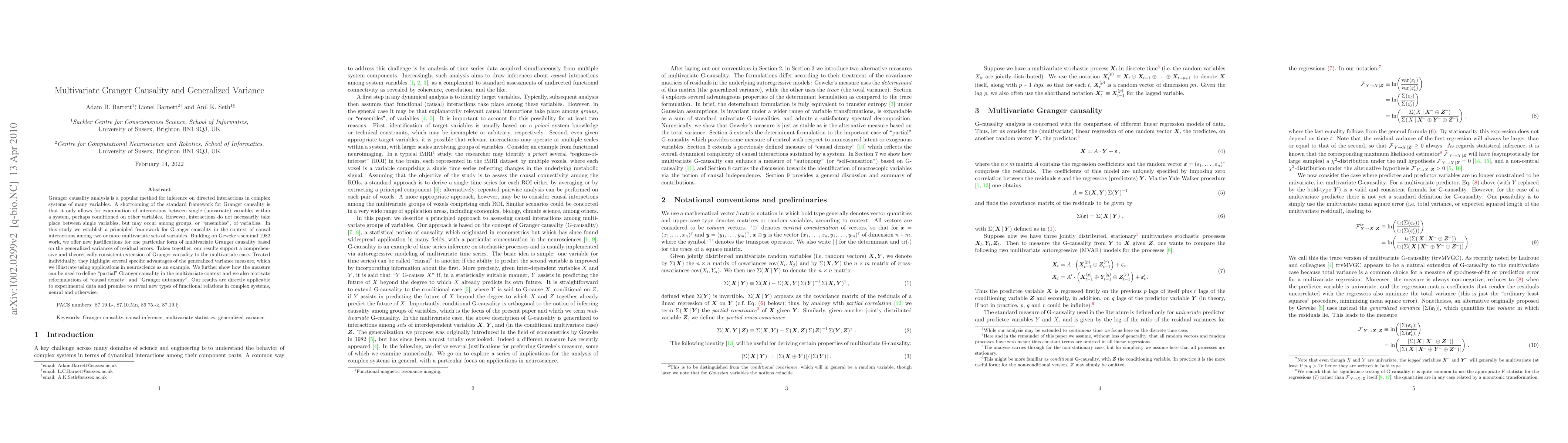 This paper extends Granger causality analysis to multivariate systems, allowing for examination of interactions among groups of variables rather than just single variables. It proposes a new framework based on generalized variances of residual errors, offering advantages for revealing functional relations in complex systems, illustrated with neuroscience applications.