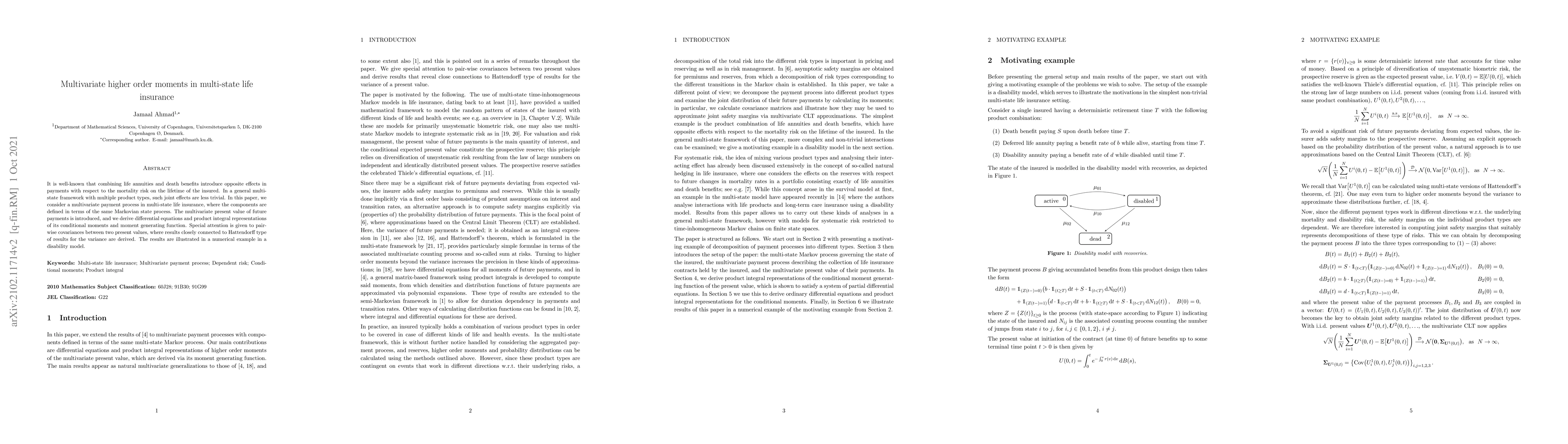 It is well-known that combining life annuities and death benefits introduce opposite effects in payments with respect to the mortality risk on the lifetime of the insured. In a general multi-state framework with multiple product types, such joint effects are less trivial. In this paper, we consider a multivariate payment process in multi-state life insurance, where the components are defined in terms of the same Markovian state process. The multivariate present value of future payments is introduced, and we derive differential equations and product integral representations of its conditional moments and moment generating function. Special attention is given to pair-wise covariances between two present values, where results closely connected to Hattendorff type of results for the variance are derived. The results are illustrated in a numerical example in a disability model.