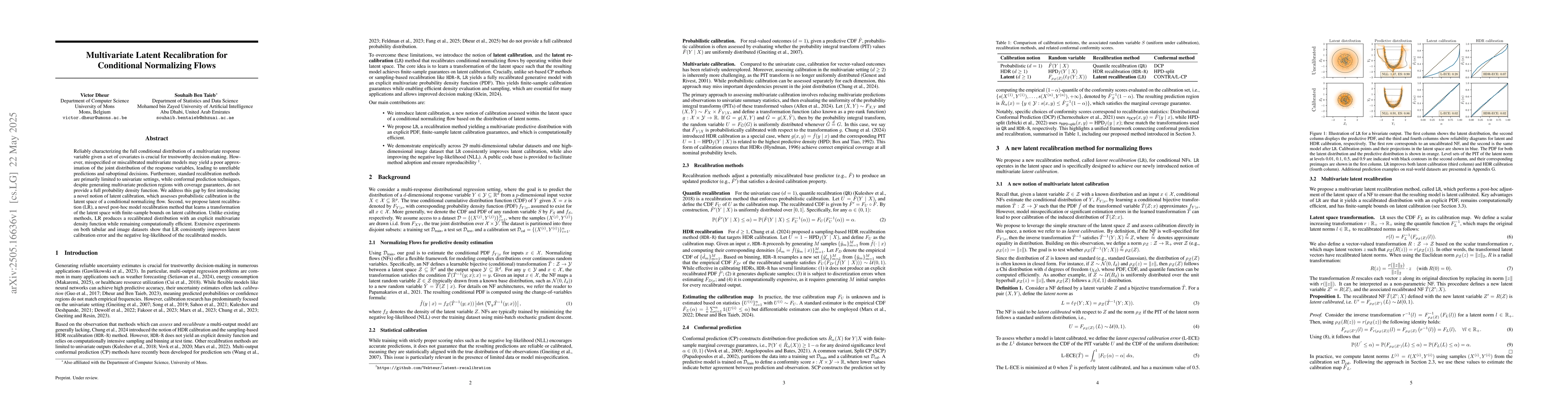 Unlike standard recalibration methods limited to univariate settings and conformal prediction techniques lacking explicit multivariate density functions, LR provides a computationally efficient solution for multivariate latent calibration with coverage guarantees.