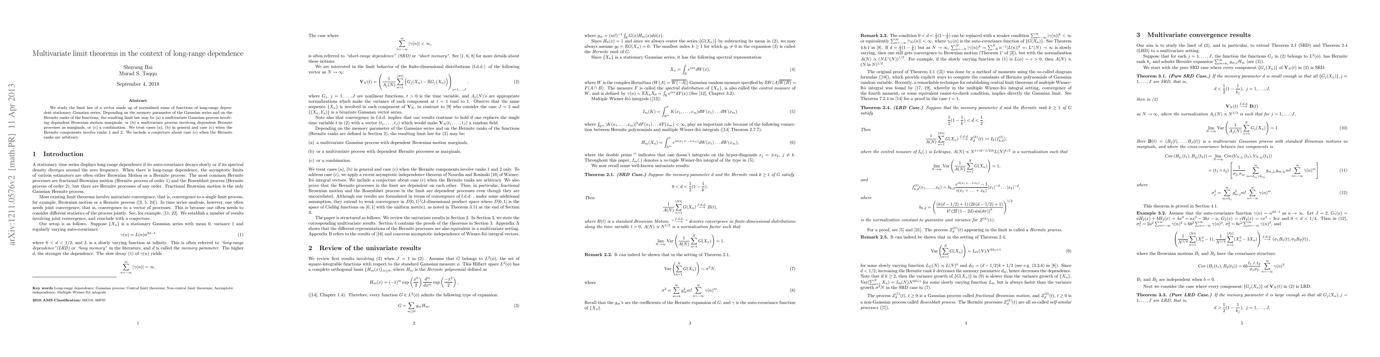 This paper investigates the limit laws of normalized sums of functions from long-range dependent stationary Gaussian series, resulting in multivariate Gaussian processes or Hermite processes depending on the memory parameter and function ranks. The study covers general cases and proposes a conjecture for more complex scenarios.