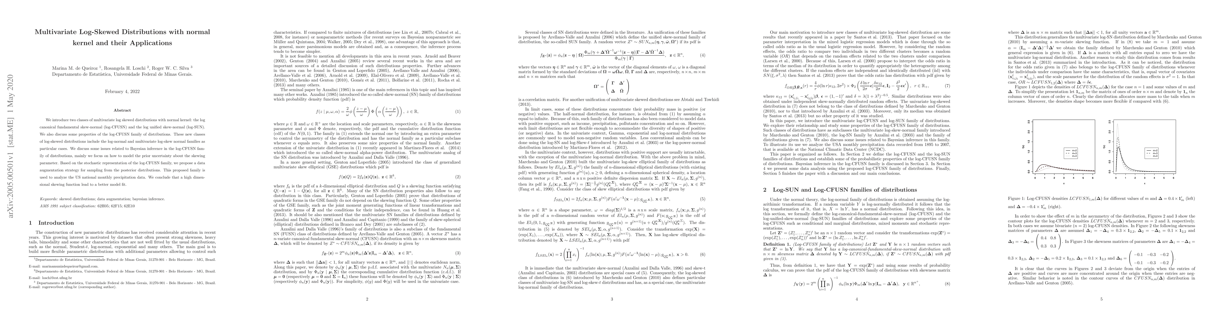 This paper introduces two new multivariate log-skewed distributions with normal kernels—log-CFUSN and log-SUN—and discusses their properties and Bayesian inference methods. The proposed distributions are applied to analyze US national monthly precipitation data, demonstrating improved model fit with higher dimensional skewing functions.