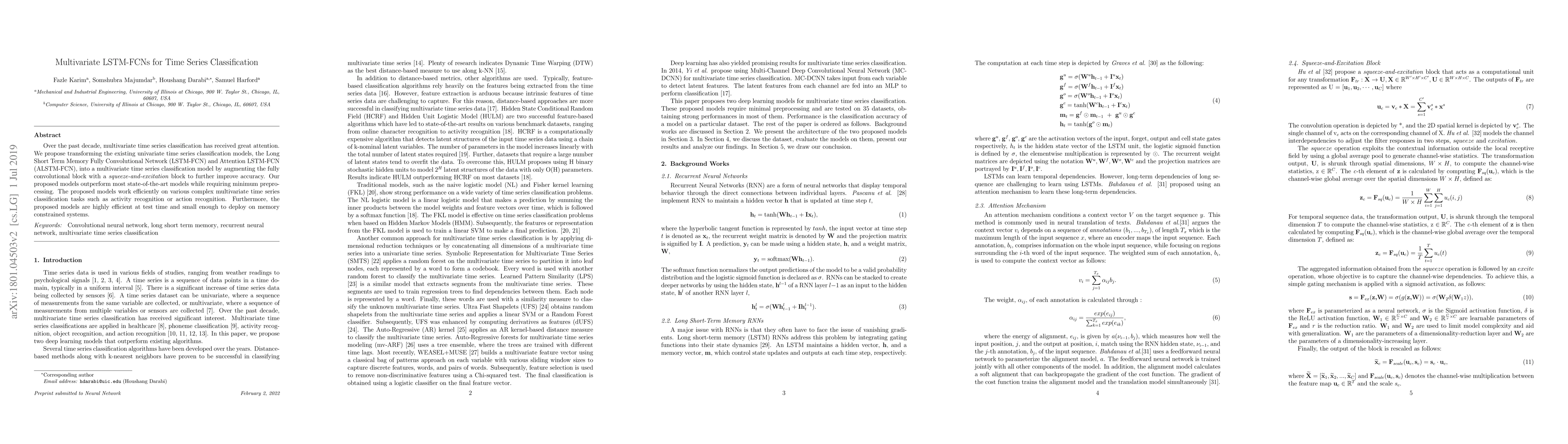 This paper proposes enhanced multivariate time series classification models by augmenting LSTM-FCN and ALSTM-FCN with a squeeze-and-excitation block, achieving superior performance over state-of-the-art models with minimal preprocessing and efficient deployment.