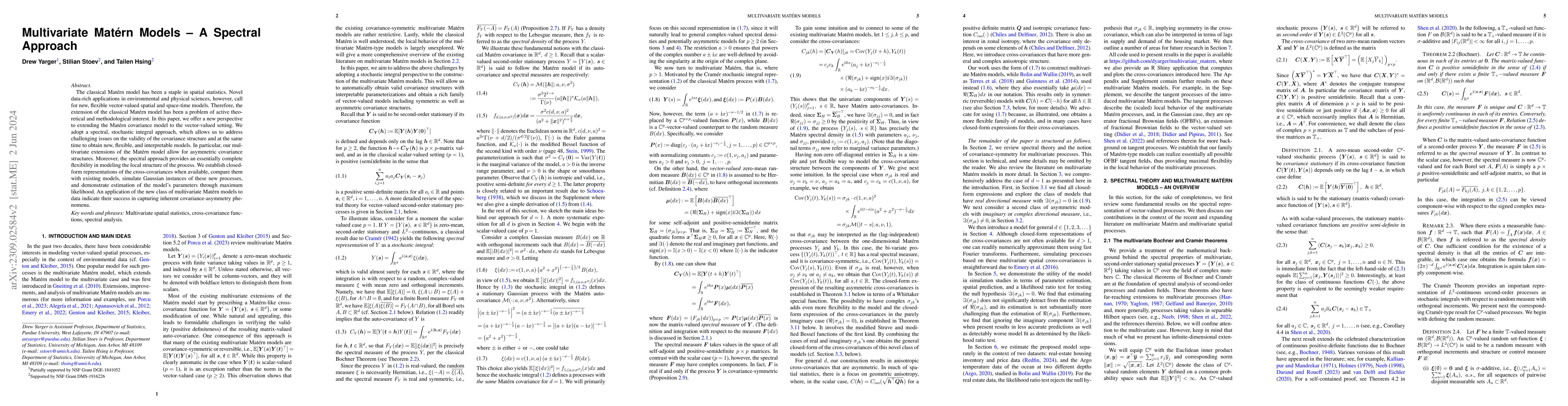 The classical Mat\'ern model has been a staple in spatial statistics. Novel data-rich applications in environmental and physical sciences, however, call for new, flexible vector-valued spatial and space-time models. Therefore, the extension of the classical Mat\'ern model has been a problem of active theoretical and methodological interest. In this paper, we offer a new perspective to extending the Mat\'ern covariance model to the vector-valued setting. We adopt a spectral, stochastic integral approach, which allows us to address challenging issues on the validity of the covariance structure and at the same time to obtain new, flexible, and interpretable models. In particular, our multivariate extensions of the Mat\'ern model allow for asymmetric covariance structures. Moreover, the spectral approach provides an essentially complete flexibility in modeling the local structure of the process. We establish closed-form representations of the cross-covariances when available, compare them with existing models, simulate Gaussian instances of these new processes, and demonstrate estimation of the model's parameters through maximum likelihood. An application of the new class of multivariate Mat\'ern models to environmental data indicate their success in capturing inherent covariance-asymmetry phenomena.