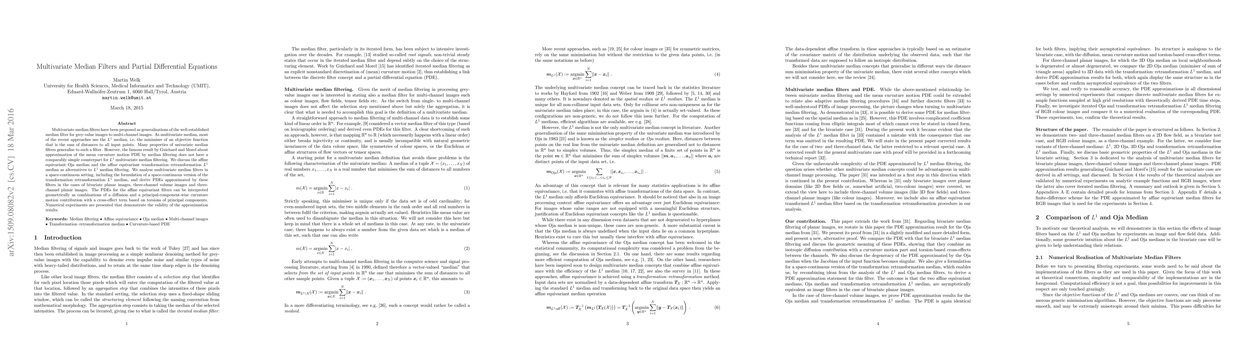 Researchers explore how multivariate median filters can approximate partial differential equations, finding that certain filters can model diffusion and curvature motion in multiple-channel images.