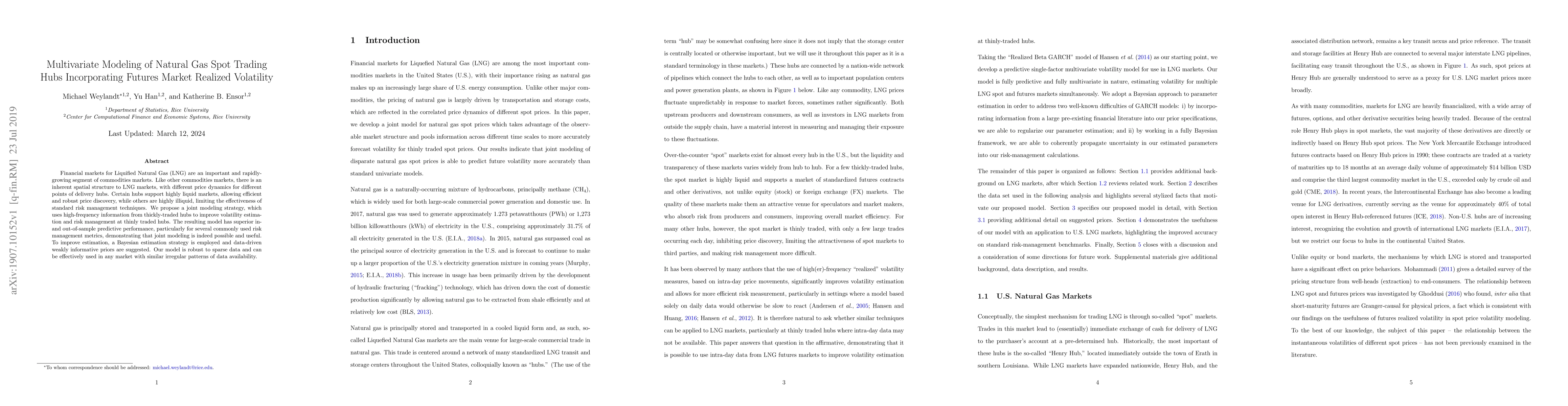 Financial markets for Liquified Natural Gas (LNG) are an important and rapidly-growing segment of commodities markets. Like other commodities markets, there is an inherent spatial structure to LNG markets, with different price dynamics for different points of delivery hubs. Certain hubs support highly liquid markets, allowing efficient and robust price discovery, while others are highly illiquid, limiting the effectiveness of standard risk management techniques. We propose a joint modeling strategy, which uses high-frequency information from thickly-traded hubs to improve volatility estimation and risk management at thinly traded hubs. The resulting model has superior in- and out-of-sample predictive performance, particularly for several commonly used risk management metrics, demonstrating that joint modeling is indeed possible and useful. To improve estimation, a Bayesian estimation strategy is employed and data-driven weakly informative priors are suggested. Our model is robust to sparse data and can be effectively used in any market with similar irregular patterns of data availability.