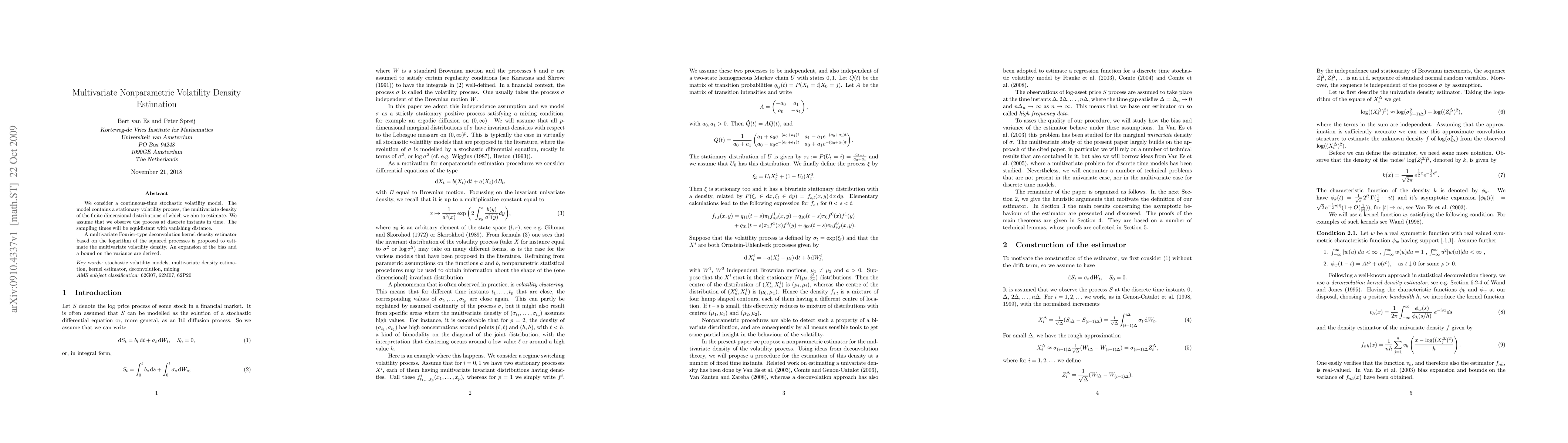 This paper proposes a multivariate Fourier-type deconvolution kernel density estimator to estimate the volatility density in continuous-time stochastic volatility models observed at equidistant discrete time points. The method includes an analysis of bias expansion and variance bounds.
