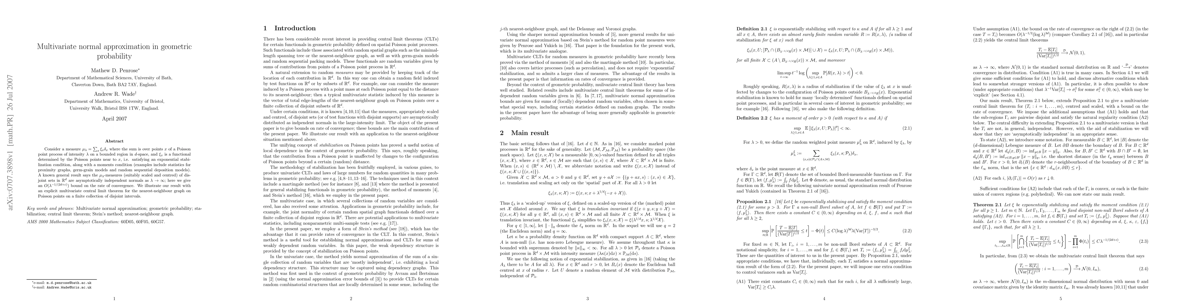 This paper establishes an $O(rac{1}{2d+ ho})$ bound on the rate of convergence for multivariate normal approximation in geometric probability, specifically for measures derived from Poisson point processes.