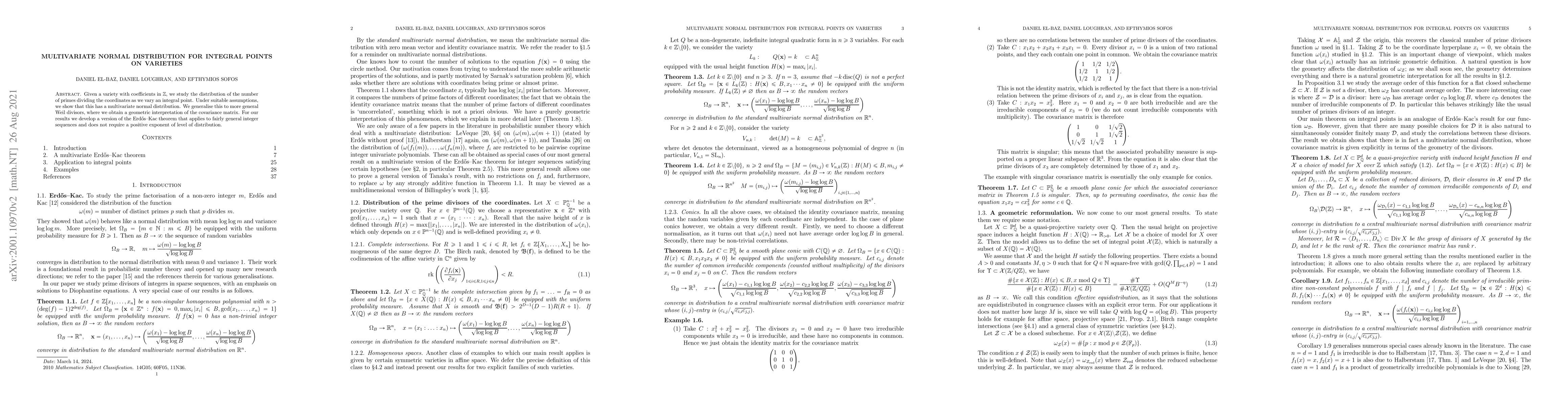 The paper studies the distribution of prime divisors among coordinates on varieties over the rational numbers, showing that it follows a multivariate normal distribution under suitable assumptions. This generalizes to more general Weil divisors, providing a geometric interpretation of the covariance matrix.