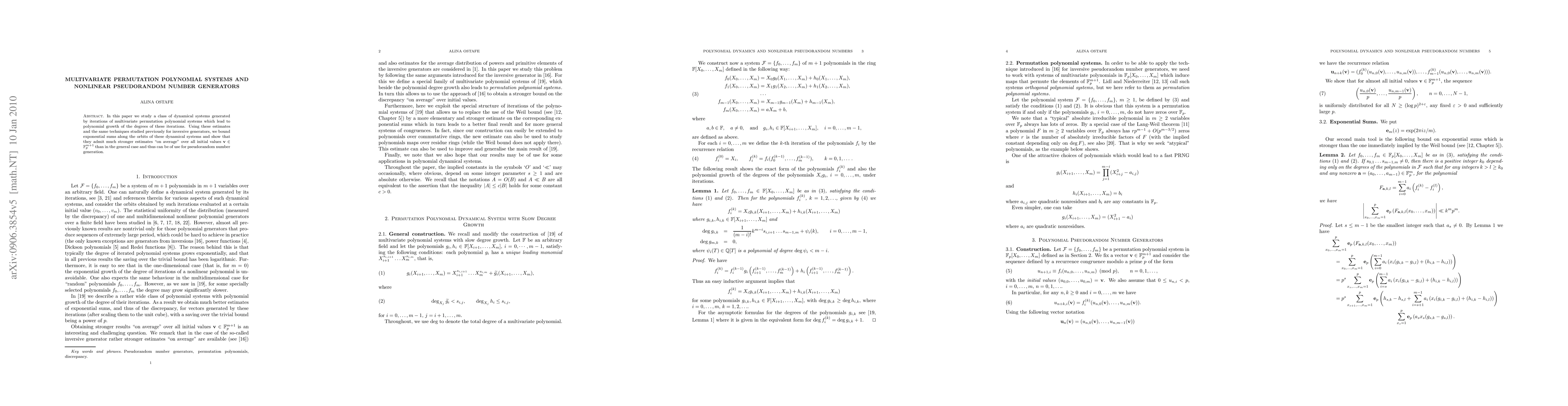 In this paper we study a class of dynamical systems generated by iterations of multivariate permutation polynomial systems which lead to polynomial growth of the degrees of these iterations. Using these estimates and the same techniques studied previously for inversive generators, we bound exponential sums along the orbits of these dynamical systems and show that they admit much stronger estimates on average over all initial values than in the general case and thus can be of use for pseudorandom number generation.