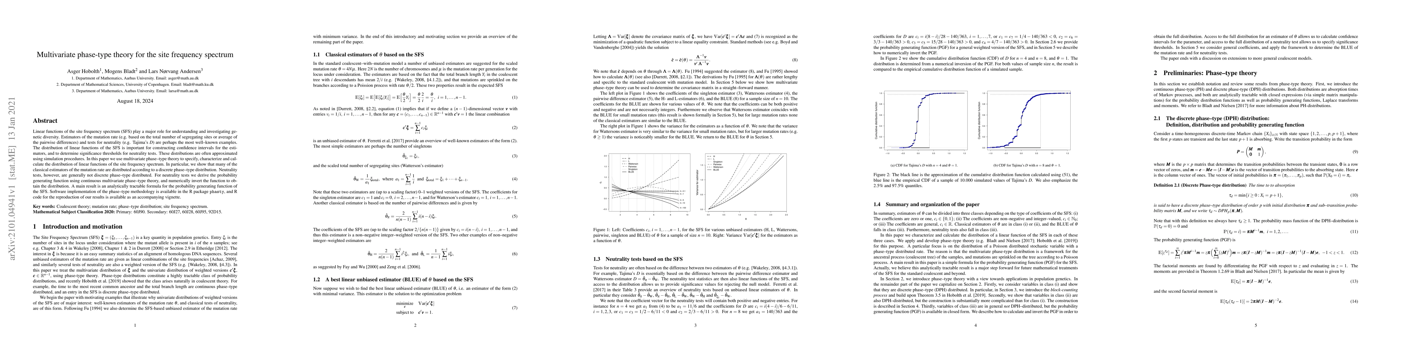 This paper applies multivariate phase-type theory to specify and calculate the distribution of linear functions of the site frequency spectrum, showing that classical mutation rate estimators follow a discrete phase-type distribution, while neutrality tests require continuous multivariate phase-type theory. An R package, phasty, is provided for software implementation.
