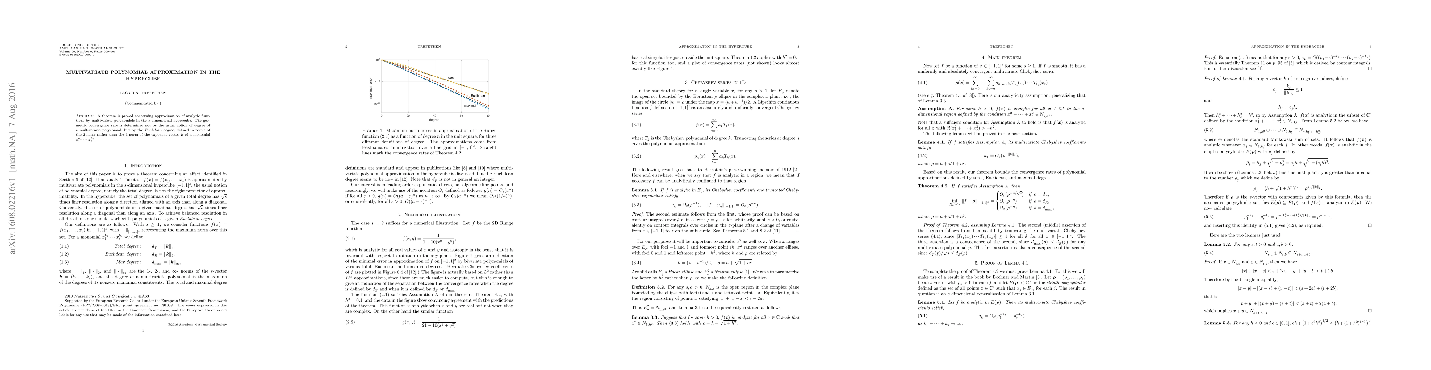 This paper proves a theorem on the approximation of analytic functions by multivariate polynomials within the $s$-dimensional hypercube, determining the geometric convergence rate based on the Euclidean degree rather than the traditional degree.