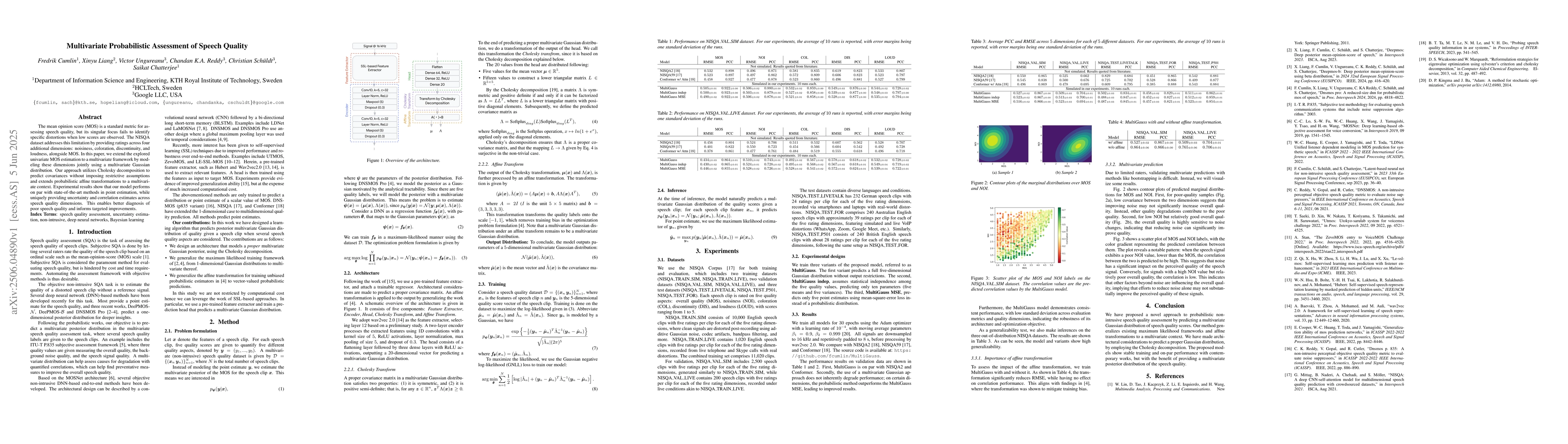 This research paper proposes a multivariate probabilistic assessment of speech quality that considers multiple dimensions beyond traditional mean opinion score (MOS), providing uncertainty estimates and correlation analysis for better diagnosis and targeted improvements.