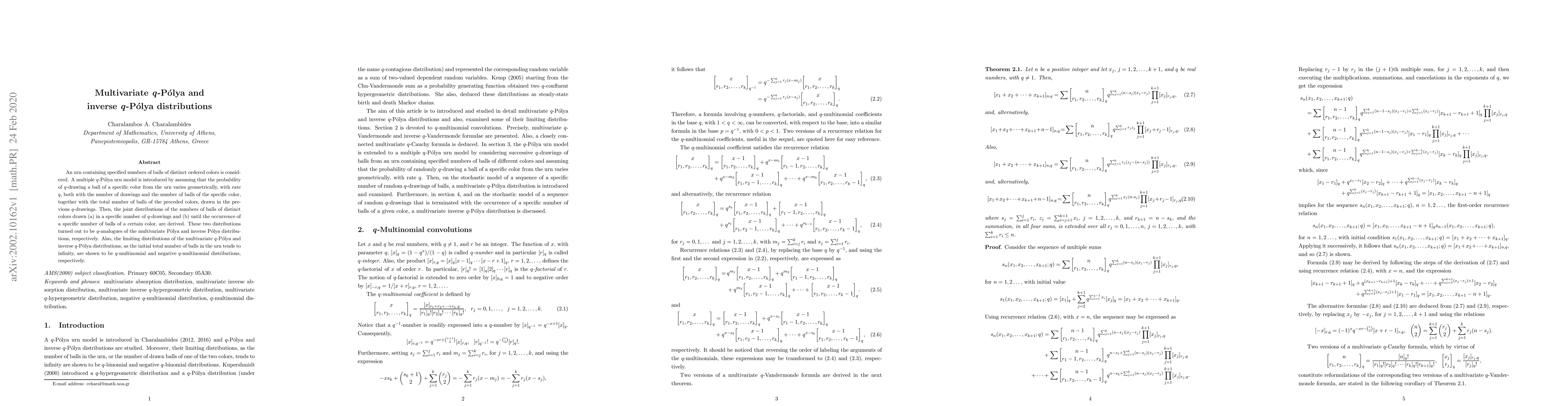 An urn containing specified numbers of balls of distinct ordered colors is considered. A multiple q-Polya urn model is introduced by assuming that the probability of q-drawing a ball of a specific color from the urn varies geometrically, with rate q, both with the number of drawings and the number of balls of the specific color, together with the total number of balls of the preceded colors, drawn in the previous q-drawings. Then, the joint distributions of the numbers of balls of distinct colors drawn (a) in a specific number of q-drawings and (b) until the occurrence of a specific number of balls of a certain color, are derived. These two distributions turned out to be q-analogues of the multivariate Polya and inverse Polya distributions, respectively. Also, the limiting distributions of the multivariate q-Polya and inverse q-Polya distributions, as the initial total number of balls in the urn tends to infinity, are shown to be q-multinomial and negative q-multinomial distributions, respectively.