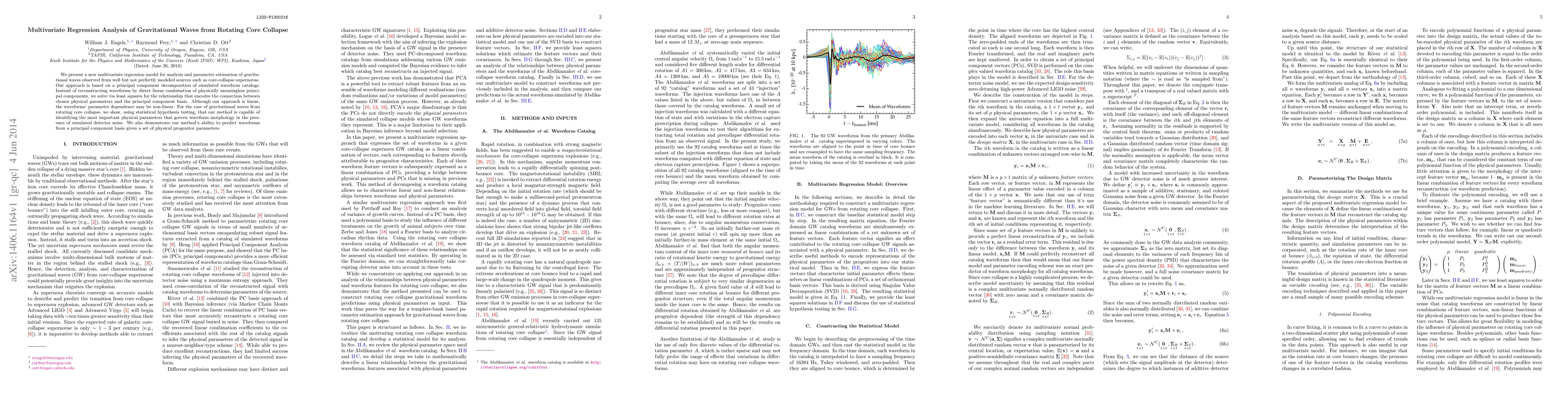 We present a new multivariate regression model for analysis and parameter estimation of gravitational waves observed from well but not perfectly modeled sources such as core-collapse supernovae. Our approach is based on a principal component decomposition of simulated waveform catalogs. Instead of reconstructing waveforms by direct linear combination of physically meaningless principal components, we solve via least squares for the relationship that encodes the connection between chosen physical parameters and the principal component basis. Although our approach is linear, the waveforms' parameter dependence may be non-linear. For the case of gravitational waves from rotating core collapse, we show, using statistical hypothesis testing, that our method is capable of identifying the most important physical parameters that govern waveform morphology in the presence of simulated detector noise. We also demonstrate our method's ability to predict waveforms from a principal component basis given a set of physical progenitor parameters.