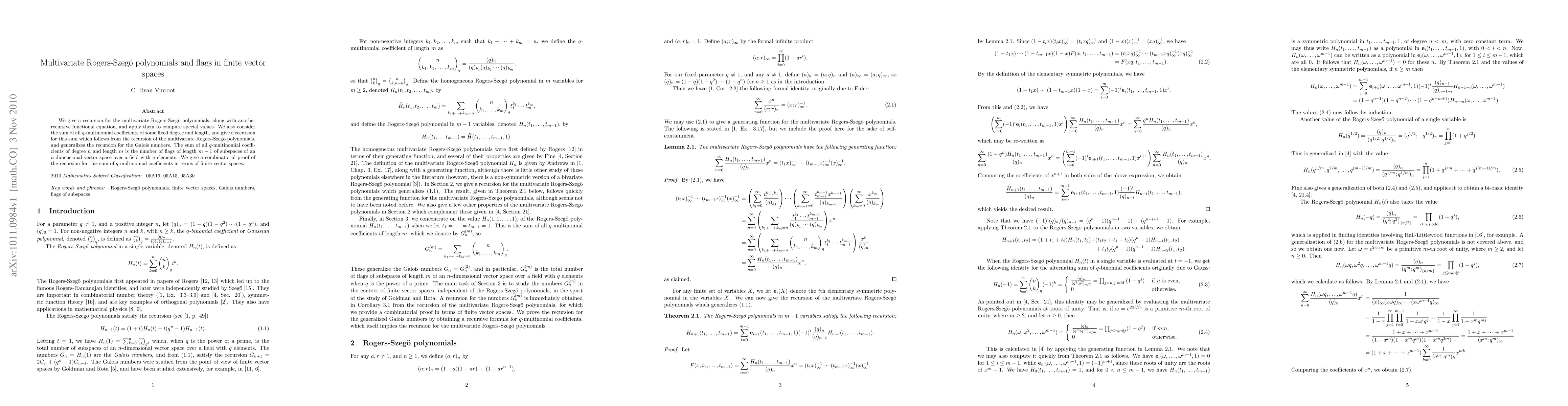 Summary: This paper presents a recursion for multivariate Rogers-Szegő polynomials and derives a related recursion for the sum of $q$-multinomial coefficients, which counts flags in finite-dimensional vector spaces over fields with $q$ elements. The recursion is proven combinatorially.