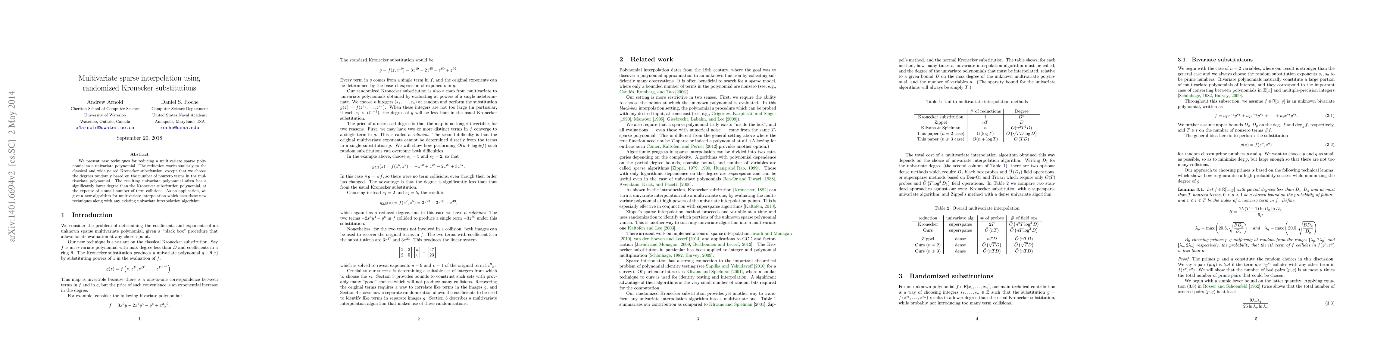 This paper introduces a novel method for reducing multivariate sparse polynomials to univariate ones through randomized Kronecker substitutions, often achieving lower polynomial degrees with minor term collisions. The approach is applied to develop a new multivariate interpolation algorithm combining these techniques with existing univariate methods.