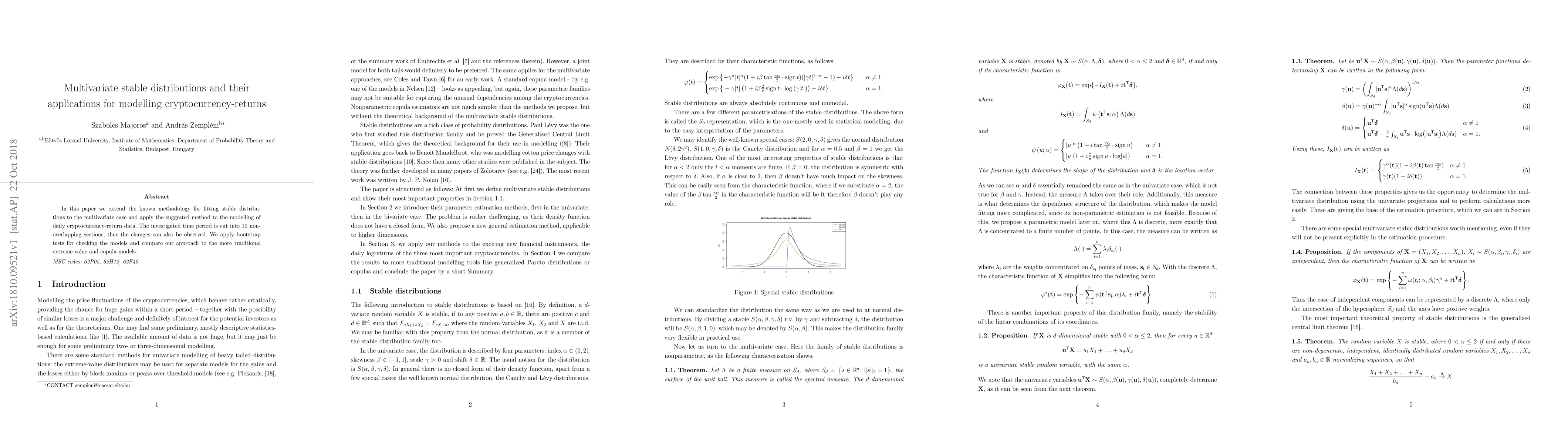 This paper extends stable distribution fitting to multivariate cases and applies it to model daily cryptocurrency returns, comparing it with traditional extreme-value and copula models. Bootstrap tests are used to validate the proposed method, which is applied to 10 non-overlapping sections of data to observe changes over time.