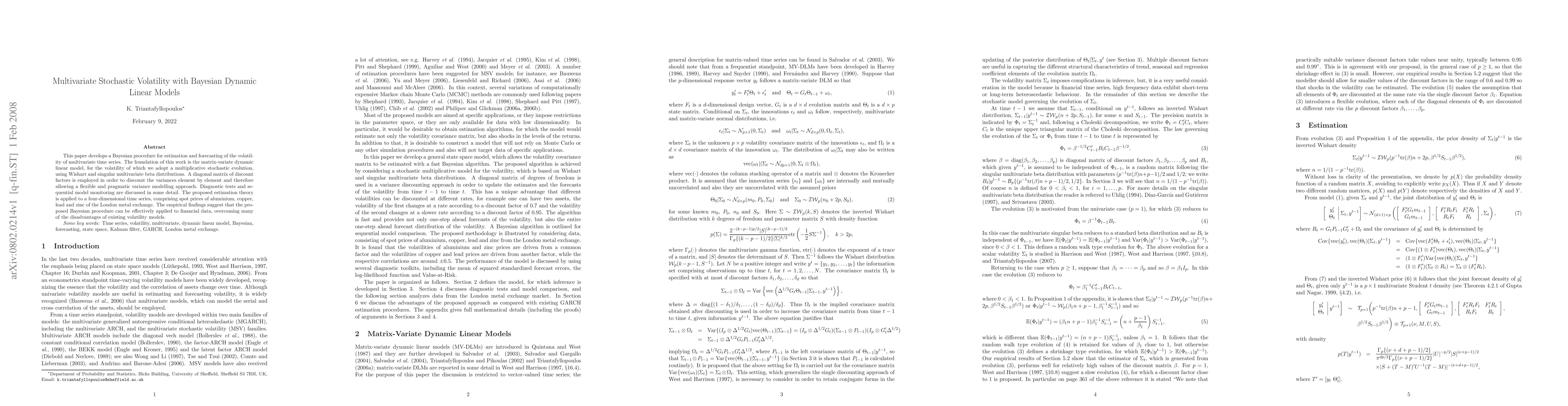 This paper proposes a Bayesian dynamic linear model for estimating and forecasting the volatility of multivariate time series using a multiplicative stochastic evolution and Wishart and singular multivariate beta distributions. The method is effectively applied to London Metal Exchange data, demonstrating superior performance over existing volatility models.