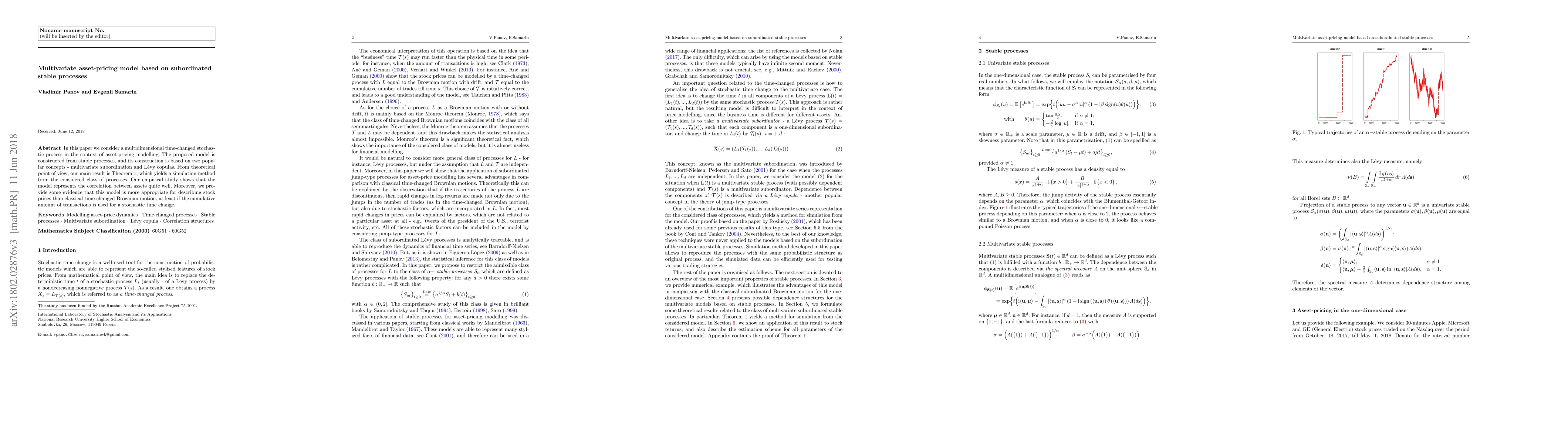 This paper explores time-changed stochastic models based on multivariate stable processes, highlighting their advantages over classical Brownian motions, particularly in modeling stock prices using transaction volumes. The model leverages multivariate subordination and Lévy copulas for enhanced accuracy.