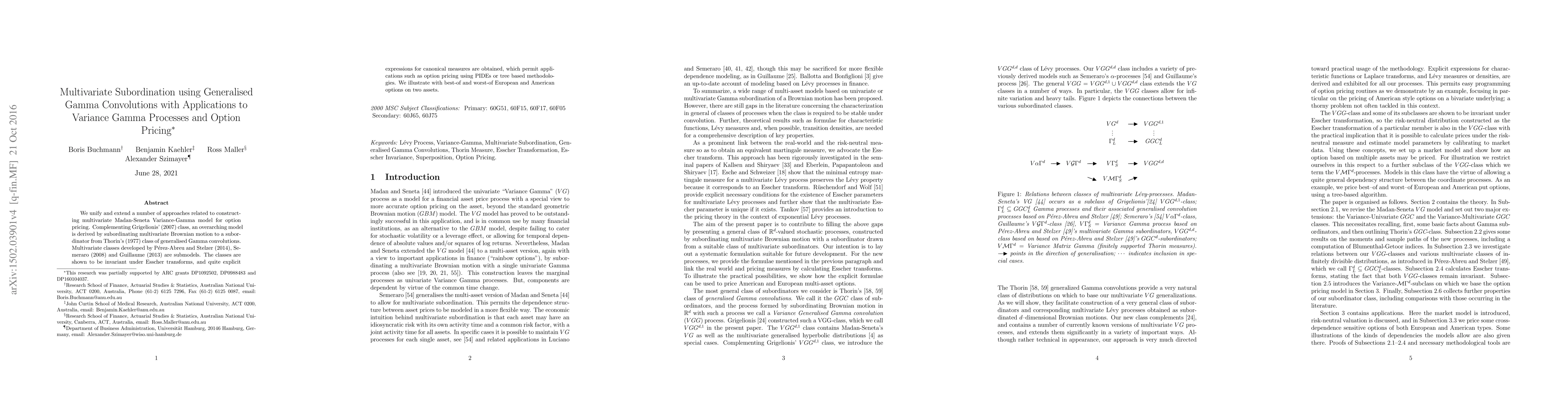 We unify and extend a number of approaches related to constructing multivariate Variance-Gamma (V.G.) models for option pricing. An overarching model is derived by subordinating multivariate Brownian motion to a subordinator from the Thorin (1977) class of generalised Gamma convolution subordinators. A class of models due to Grigelionis (2007), which contains the well-known Madan-Seneta V.G. model, is of this type, but our multivariate generalization is considerably wider, allowing in particular for processes with infinite variation and a variety of dependencies between the underlying processes. Multivariate classes developed by P\'erez-Abreu and Stelzer (2012) and Semeraro (2008) and Guillaume (2013) are also submodels. The new models are shown to be invariant under Esscher transforms, and quite explicit expressions for canonical measures (and transition densities in some cases) are obtained, which permit applications such as option pricing using PIDEs or tree based methodologies. We illustrate with best-of and worst-of European and American options on two assets.