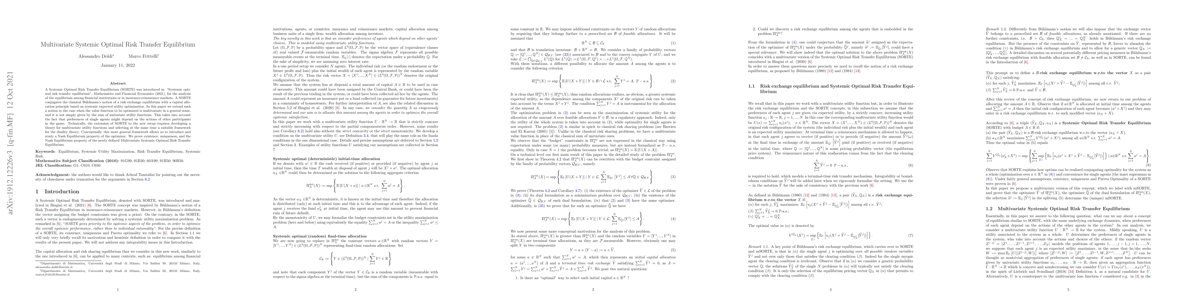 This paper extends the Systemic Optimal Risk Transfer Equilibrium (SORTE) to a multivariate utility function framework, allowing for interdependent preferences among agents. It establishes the existence, uniqueness, and Nash Equilibrium property of the new Multivariate Systemic Optimal Risk Transfer Equilibrium.