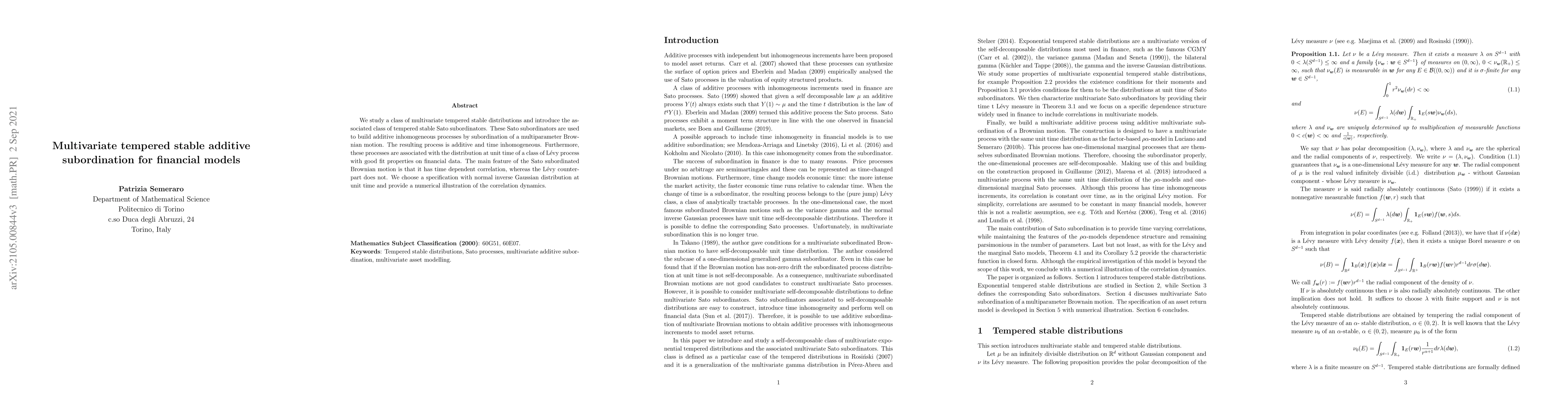 This paper introduces multivariate tempered stable distributions and associated Sato subordinators to construct additive, time-inhomogeneous processes. These processes exhibit time-dependent correlation, offering improved fit for financial data compared to traditional models.