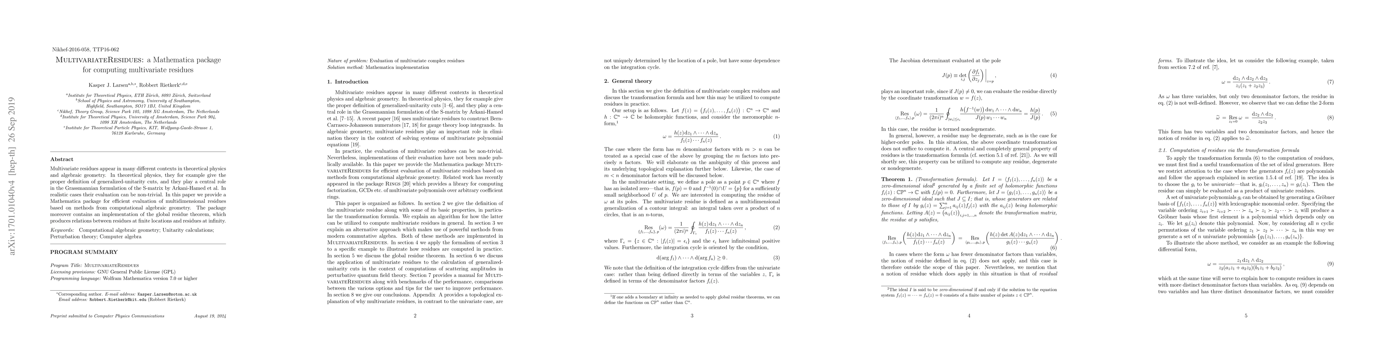 A Mathematica package is introduced for efficiently computing multivariate residues in theoretical physics and algebraic geometry, with an added feature of global residue theorem relations.