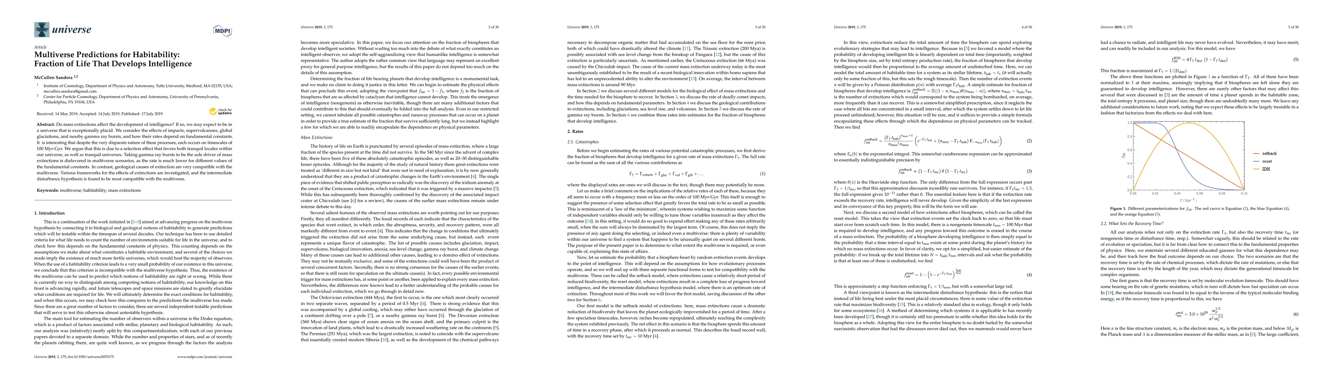 Do mass extinctions affect the development of intelligence? If so, we may expect to be in a universe that is exceptionally placid. We consider the effects of impacts, supervolcanoes, global glaciations, and nearby gamma ray bursts, and how their rates depend on fundamental constants. It is interesting that despite the very disparate nature of these processes, each occurs on timescales of 100 Myr-Gyr. We argue that this is due to a selection effect that favors both tranquil locales within our universe, as well as tranquil universes. Taking gamma ray bursts to be the sole driver of mass extinctions is disfavored in multiverse scenarios, as the rate is much lower for different values of the fundamental constants. In contrast, geological causes of extinction are very compatible with the multiverse. Various frameworks for the effects of extinctions are investigated, and the intermediate disturbance hypothesis is found to be most compatible with the multiverse.