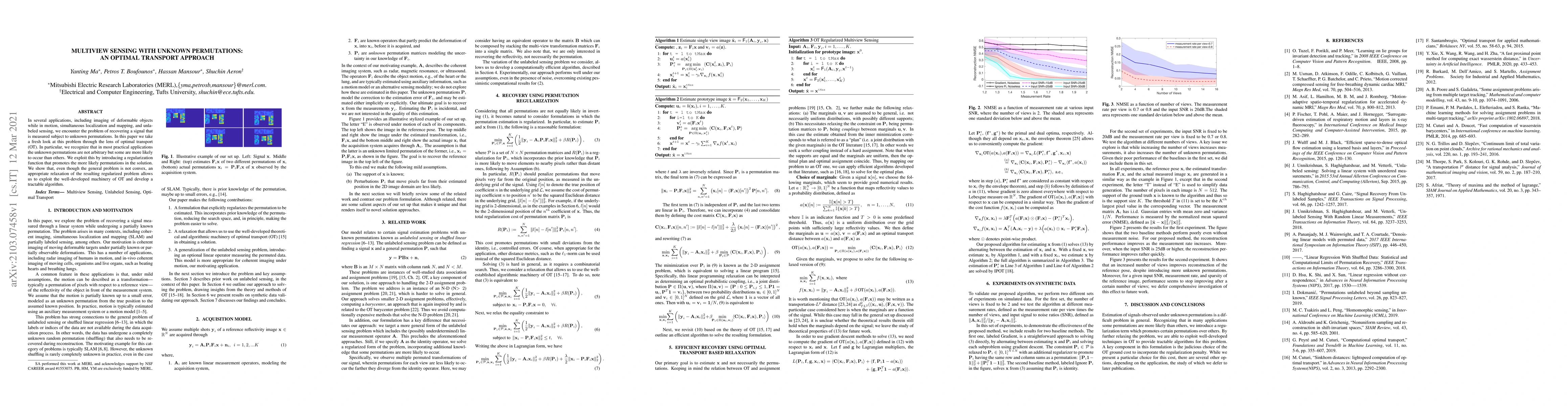 Researchers develop an optimal transport approach to tackle multiview sensing with unknown permutations, introducing a regularization function to favor more likely permutations and enabling a tractable algorithm.
